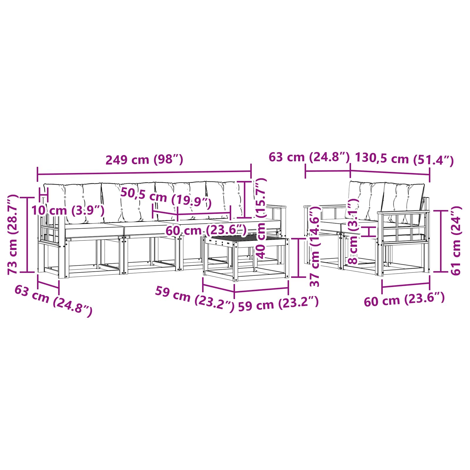 - 6 x Sitzkissen: 60 x 50,5 x 8 cm (LxBxH)