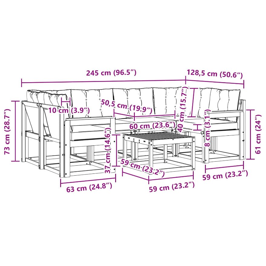 - 8 x Rückenkissen: 60 x 40 x 10 cm (LxBxH)