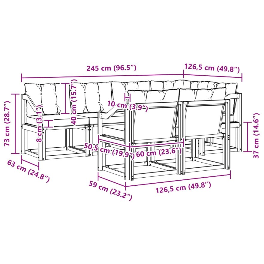 - 6 x Sitzkissen: 60 x 50,5 x 8 cm (LxBxH)