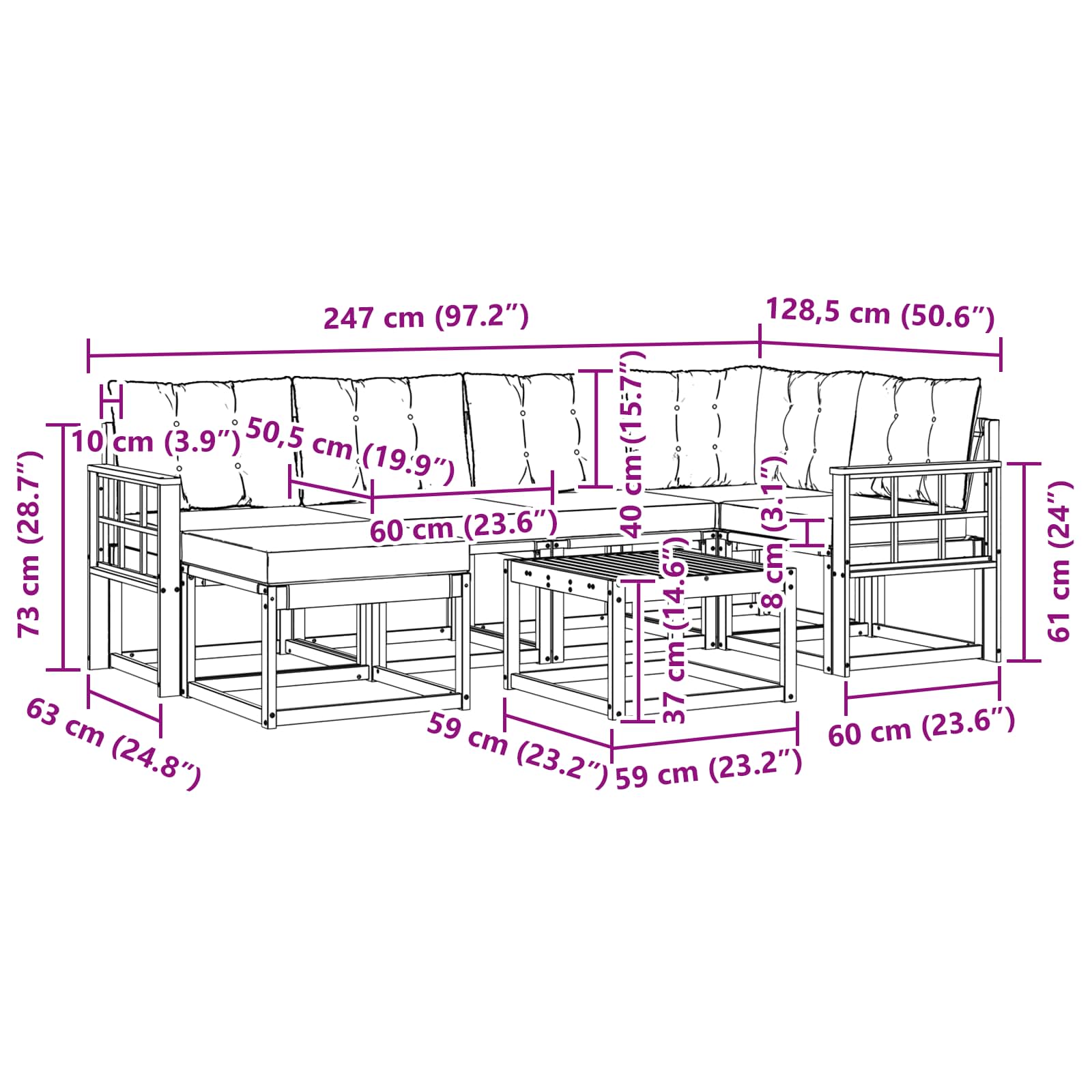 - 4 x Sitzkissen: 60 x 50,5 x 8 cm (LxBxH)