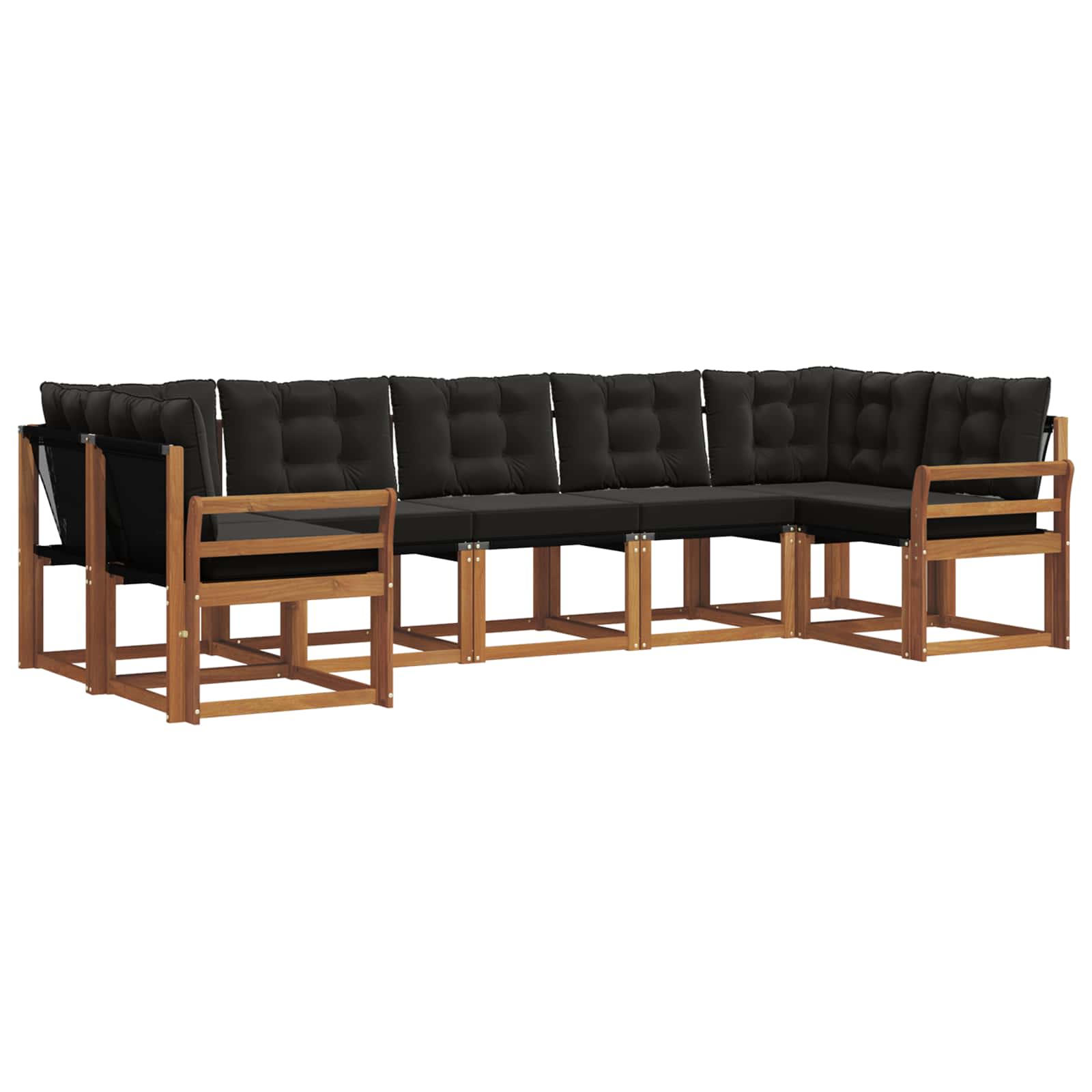 Dieses moderne Sofa-Set ist ein fünf-teiliges Möbel-Set, das deinem Außenbereich einen stylishen Touch verleiht. Es hat einen zeitgemäßen, schlichten Look mit klaren Linien – genau das Richtige für Garten, Terrasse, Hinterhof oder Pool. Die braunen und natürlichen Holzfarben harmonieren mit der Umgebung und schaffen eine entspannte Atmosphäre. Mit den dick gepolsterten Kissen bietet es optimalen Komfort und ist perfekt für jede Zusammenkunft oder Freizeitaktivität. Die robusten Materialien sorgen dafür, dass du lange Freude daran hast, selbst draußen. Natürliche Holzstruktur: Das Sofa-Set ist aus massivem Akazienholz gefertigt und hat einen eleganten, natürlichen Look. Die Wahl dieses Materials sorgt für hohe Haltbarkeit und wertet deinen Außenbereich mit einem Hauch von Stil auf. Akazienholz ist dicht und steht für Langlebigkeit, eine praktische Wahl für Gartenmöbel. Farb- und lichtbeständig: Genieße ein immer schönes, lebendiges Finish im Freien. Das farbechte Material sorgt dafür, dass die Möbel auch nach längerem Sonnenlicht frisch und neu aussehen – ohne Kompromisse bei Qualität oder Aussehen. Leicht zu reinigen: Das Sofa-Set bleibt dank dieser Funktion sauber ohne viel Aufwand. Ein einfaches Wischen mit einem feuchten Tuch entfernt Staub und Flecken, was dir Zeit und Mühe spart. Unterstützende Rückenlehne: Genieße Komfort und bessere Haltung mit den clever gestalteten Rückenlehnen. Sie bieten die Stabilität, die du beim Entspannen, Lesen oder geselligen Beisammensein im Freien brauchst. Praktische Armlehne: Die Armlehnen bieten nicht nur Stil, sondern auch zusätzliche Unterstützung, damit du noch bequemer sitzen kannst. Sie sind aus massivem Holz, stabil und langlebig.