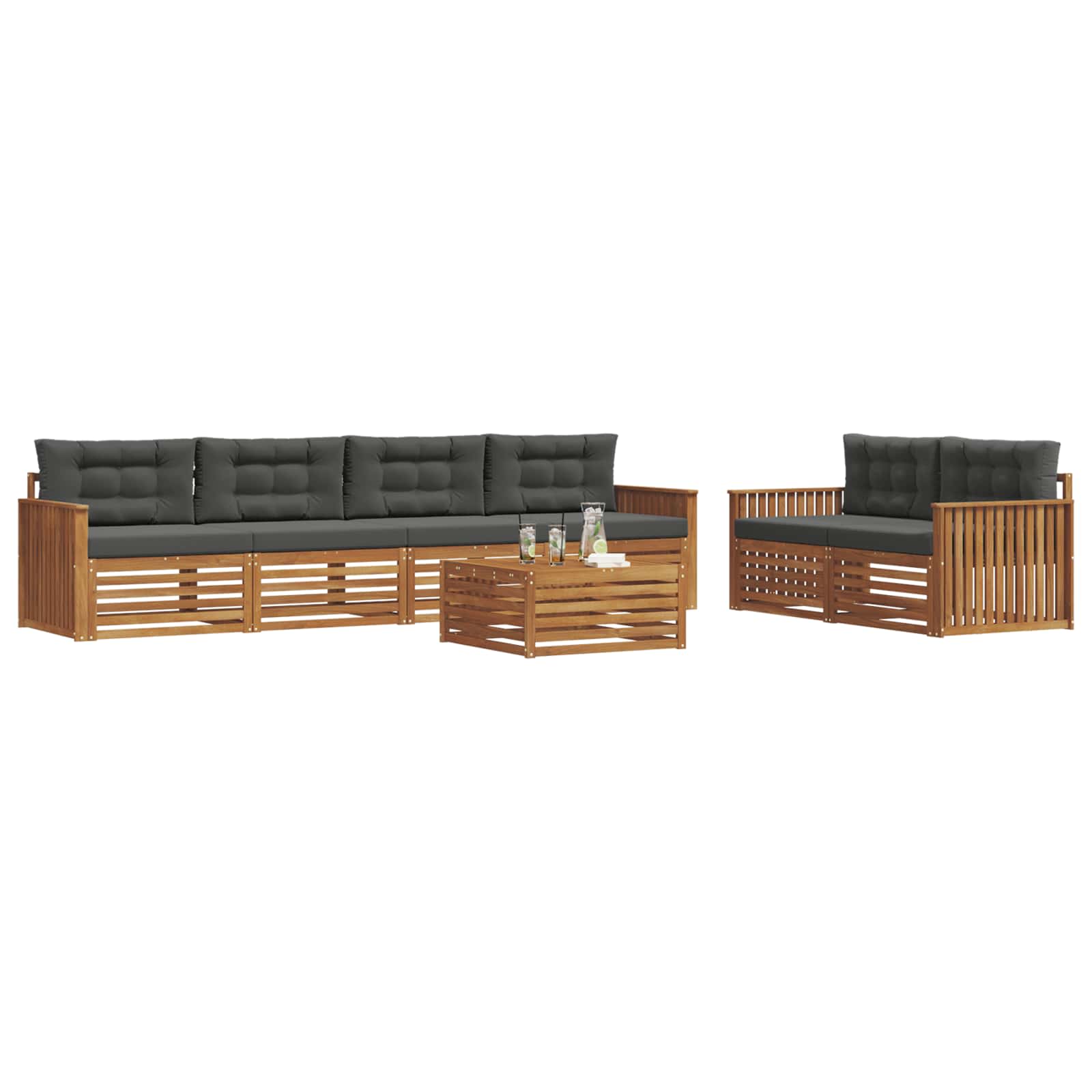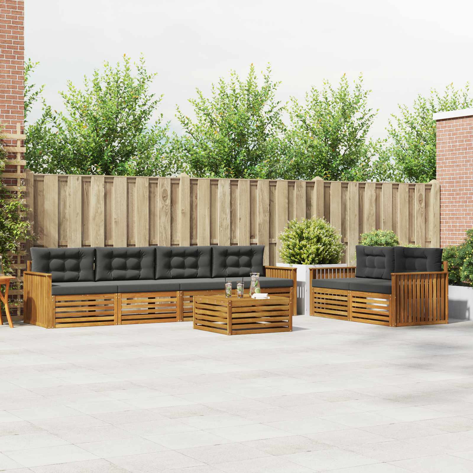 Das Outdoor-Möbelset bringt Stil und Funktionalität zusammen und macht jeden Garten oder jede Terrasse zum Hingucker. Das moderne Design mit klaren Linien und einem minimalistischen Ansatz sorgt für Eleganz und lädt ein, im Freien zu entspannen und Zeit mit Freunden zu verbringen. Hergestellt aus solidem Akazienholz, bietet das Set Langlebigkeit und sieht dabei über lange Zeit gut aus – perfekt für alle, die praktische und coole Möbel für draußen wollen. Langlebiges Massivholz Akazie: Dieses Outdoor-Möbelset aus solidem Akazienholz ist super langlebig und hält auch schlechten Wetterbedingungen stand. Die robuste Bauweise gibt dir stabilen Halt, während der natürliche Farbton gut zu jeder Garten- oder Terrassengestaltung passt. Wetterfestes Design: Das Outdoor-Möbelset hat eine lackierte Oberfläche, die zusätzlichen Schutz gegen Sonne und Regen bietet. Die glatte Oberfläche hilft, das Aussehen und die Funktion zu bewahren, sodass du lange Freude daran hast. Komponenten & Design: Jedes Teil, von den Armlehnen bis zu den Rückenlehnen, ist durchdacht und stilvoll gestaltet. Es bietet zusätzlichen Komfort und sorgt für ein harmonisches Gesamtbild, das für viele Anlässe geeignet ist. Komfort & Vielseitigkeit: Das modulare Design erlaubt flexible Anordnungen für unterschiedliche Bedürfnisse und Räume. Perfekt für Entspannung, gesellige Runden oder ruhige Lesemomente – dieses Set passt sich jeder Outdoor-Umgebung an und macht alles bequemer. Einfache Pflege & Wartung: Um die Möbel in Schuss zu halten, wische einfach die Oberfläche mit einem feuchten Tuch ab und verzichte auf aggressive Reinigungsmittel. Regelmäßige Pflege sorgt dafür, dass sie lange schön bleiben.