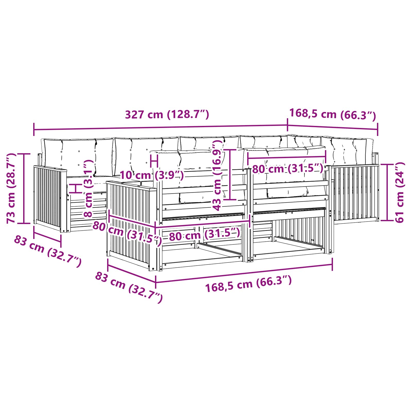 - 7 x Sitzkissen: 80 x 80 x 8 cm (LxBxH)