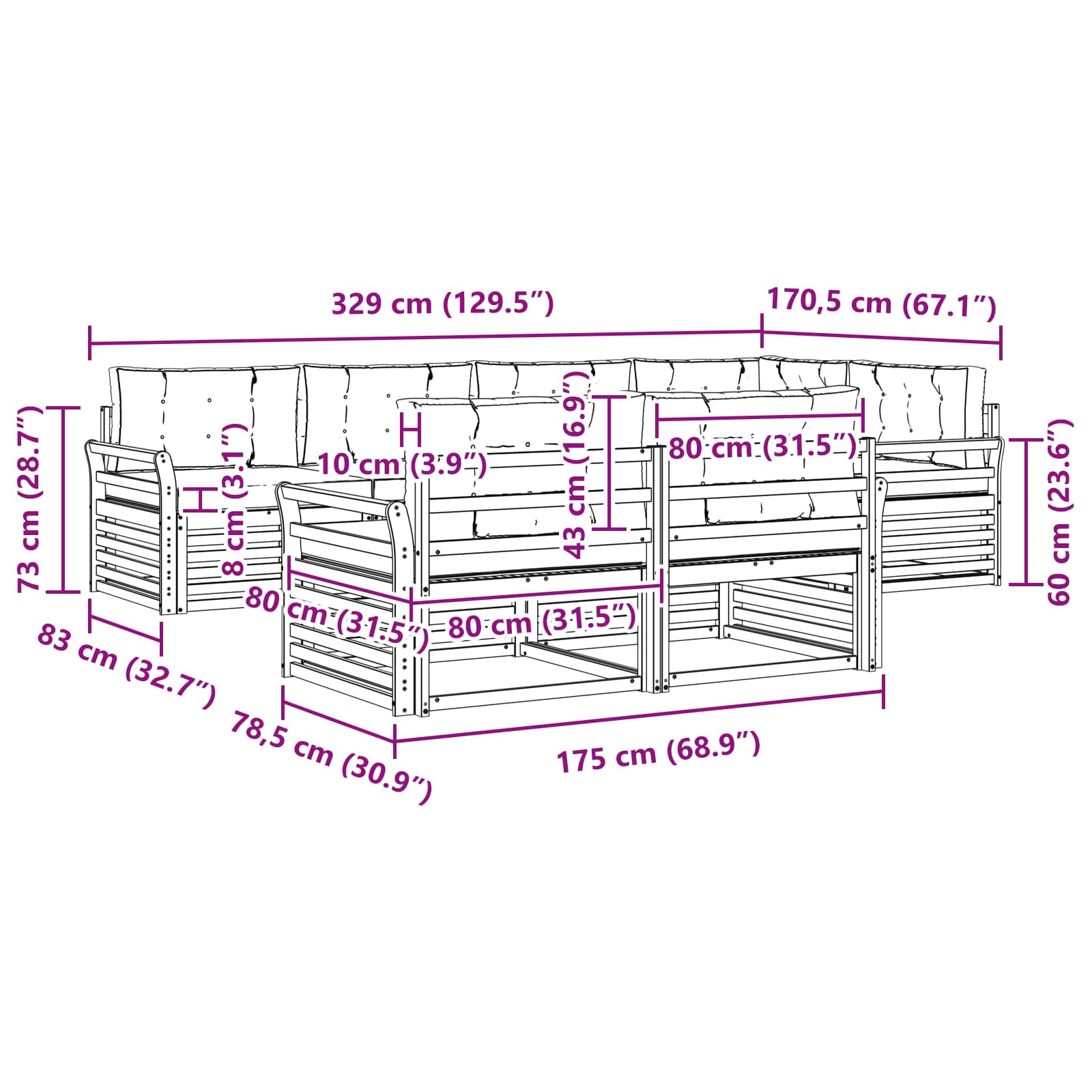 - 7 x Sitzkissen: 80 x 80 x 8 cm (LxBxH)