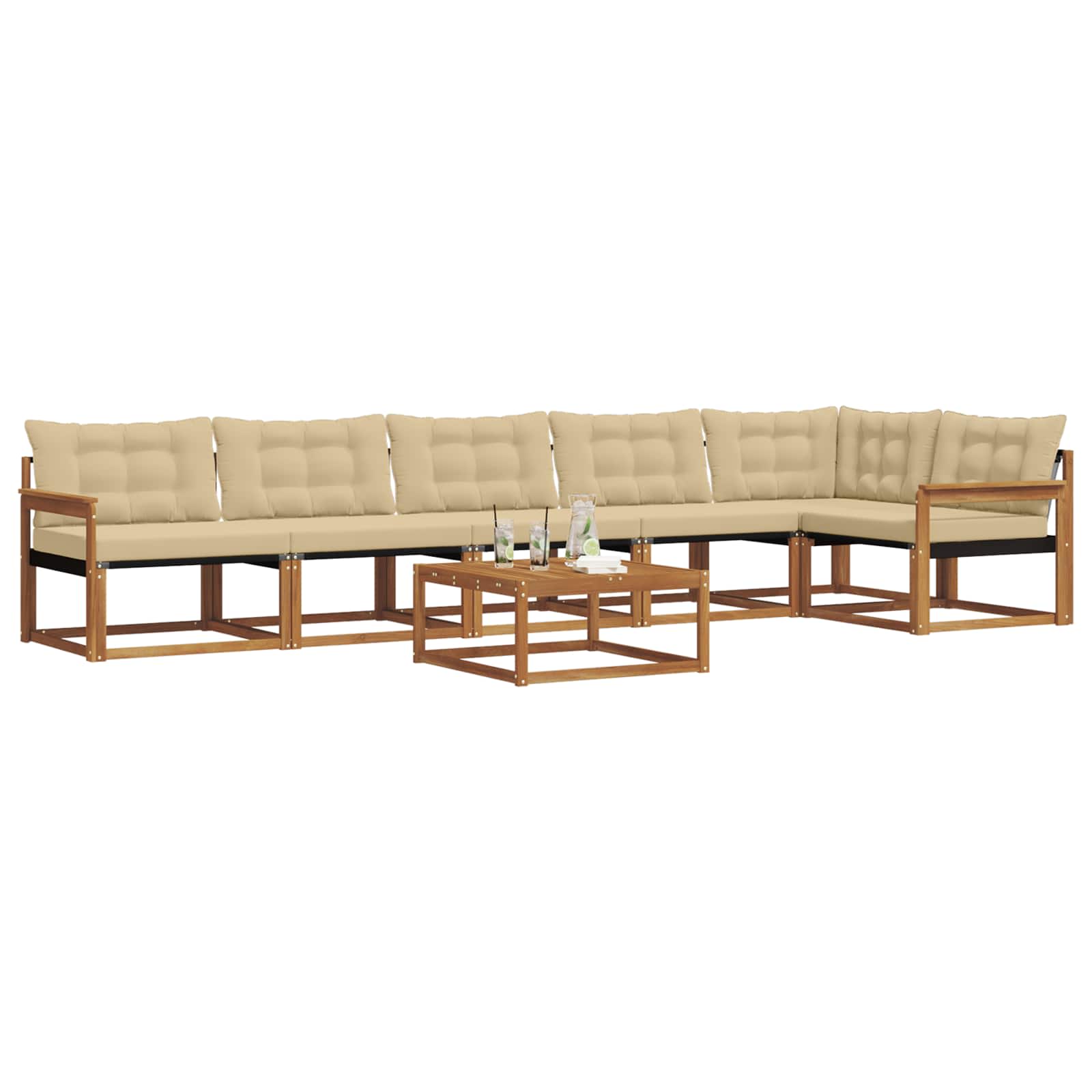 Das Außenmöbel-Set verbindet Style mit Funktion und ist ein echter Hingucker für jeden Garten oder jede Terrasse. Das moderne Design mit klaren Linien und minimalen Details bringt Eleganz und lädt zum Entspannen im Freien und zum Feiern mit Freunden ein. Hergestellt aus massivem Akazienholz sorgt das Set für Langlebigkeit und einen anhaltend schönen Look – perfekt für alle, die praktische und schicke Gartenmöbel suchen. Langlebiges Massivholz Akazie: Hergestellt aus massivem Akazienholz, ist dieses Außenset bekannt für seine Robustheit und Wetterbeständigkeit. Die solide Bauweise sorgt für starke Unterstützung und anhaltende Stabilität, während der warme Farbton jeden Garten oder jede Terrasse aufwertet. Wetterbeständiges Design: Das Außenset hat eine lackierte Oberfläche, die zusätzlichen Schutz gegen Sonne, leichten Regen und Witterung bietet. Der polierte Look sorgt dafür, dass das Set in deinem Garten, auf der Terrasse oder im Hinterhof lange gut aussieht. Komponenten & Gestaltung: Jedes Teil, von Armlehnen bis Rückenkissen, ist sowohl schick als auch praktisch gestaltet. Die unterstützenden Features sorgen für zusätzlichen Komfort, während das einheitliche Design ein harmonisches Gesamtbild für alle Outdoor-Anlässe schafft. Komfort & Vielseitigkeit: Das modulare Design ermöglicht dir flexible Anordnungen, die du je nach Raum und Bedarf anpassen kannst. Ideal für Entspannung, gesellige Runden oder ruhige Lesestunden passt sich dieses Set problemlos an jede Außenumgebung an und erhöht Komfort und Nutzen. Einfache Pflege & Wartung: Um die Möbel in Schuss zu halten, wisch einfach die Oberflächen mit einem feuchten Tuch ab und vermeide aggressive oder scheuernde Reiniger. Regelmäßige Pflege hilft, ihr Aussehen zu bewahren und die Lebensdauer der Möbel zu verlängern.