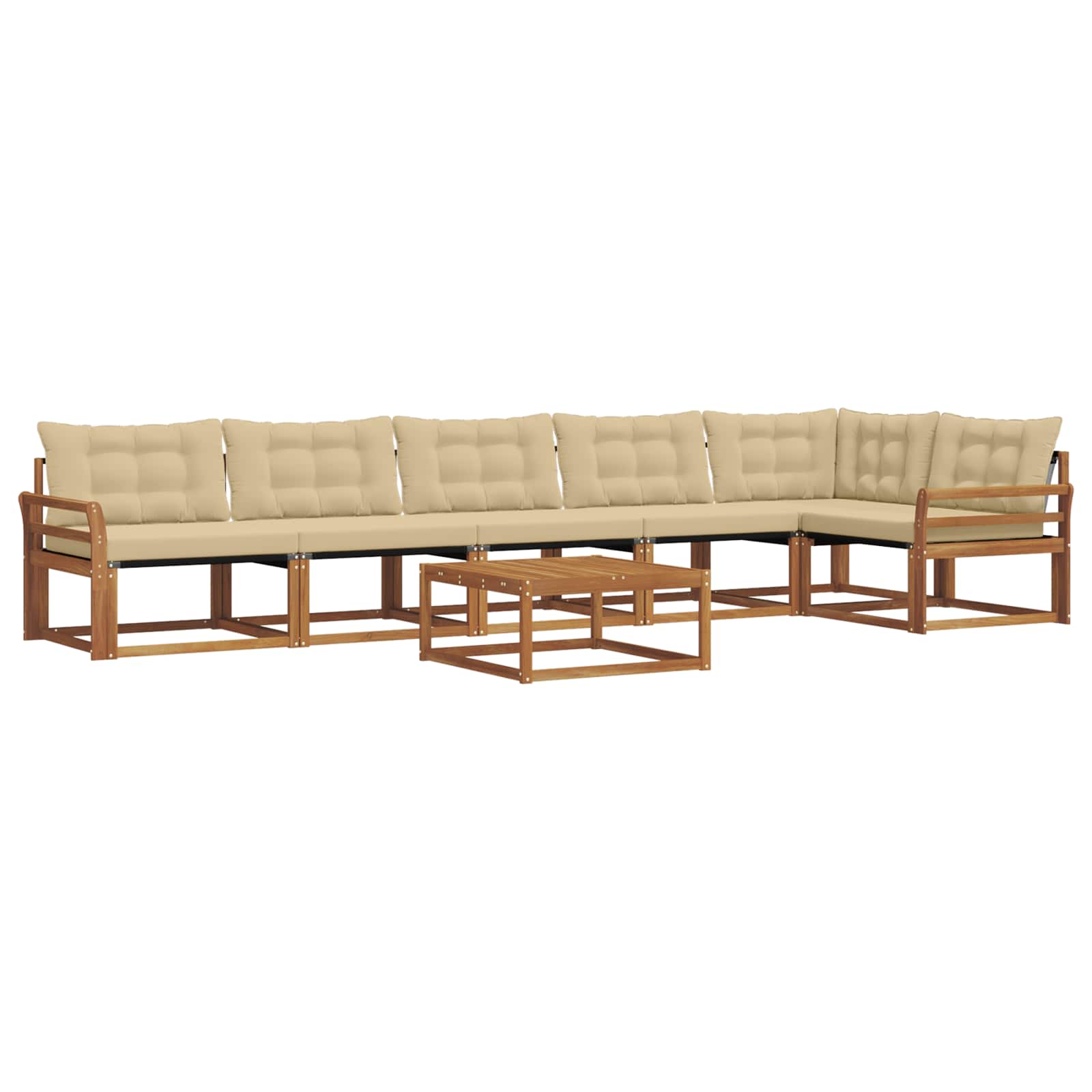 Das Außenmöbel-Set verbindet Style mit Funktion und ist ein echter Hingucker für jeden Garten oder jede Terrasse. Das moderne Design mit klaren Linien und minimalen Details bringt Eleganz und lädt zum Entspannen im Freien und zum Feiern mit Freunden ein. Hergestellt aus massivem Akazienholz sorgt das Set für Langlebigkeit und einen anhaltend schönen Look – perfekt für alle, die praktische und schicke Gartenmöbel suchen. Langlebiges Massivholz Akazie: Hergestellt aus massivem Akazienholz, ist dieses Außenset bekannt für seine Robustheit und Wetterbeständigkeit. Die solide Bauweise sorgt für starke Unterstützung und anhaltende Stabilität, während der warme Farbton jeden Garten oder jede Terrasse aufwertet. Wetterbeständiges Design: Das Außenset hat eine lackierte Oberfläche, die zusätzlichen Schutz gegen Sonne, leichten Regen und Witterung bietet. Der polierte Look sorgt dafür, dass das Set in deinem Garten, auf der Terrasse oder im Hinterhof lange gut aussieht. Komponenten & Gestaltung: Jedes Teil, von Armlehnen bis Rückenkissen, ist sowohl schick als auch praktisch gestaltet. Die unterstützenden Features sorgen für zusätzlichen Komfort, während das einheitliche Design ein harmonisches Gesamtbild für alle Outdoor-Anlässe schafft. Komfort & Vielseitigkeit: Das modulare Design ermöglicht dir flexible Anordnungen, die du je nach Raum und Bedarf anpassen kannst. Ideal für Entspannung, gesellige Runden oder ruhige Lesestunden passt sich dieses Set problemlos an jede Außenumgebung an und erhöht Komfort und Nutzen. Einfache Pflege & Wartung: Um die Möbel in Schuss zu halten, wisch einfach die Oberflächen mit einem feuchten Tuch ab und vermeide aggressive oder scheuernde Reiniger. Regelmäßige Pflege hilft, ihr Aussehen zu bewahren und die Lebensdauer der Möbel zu verlängern.