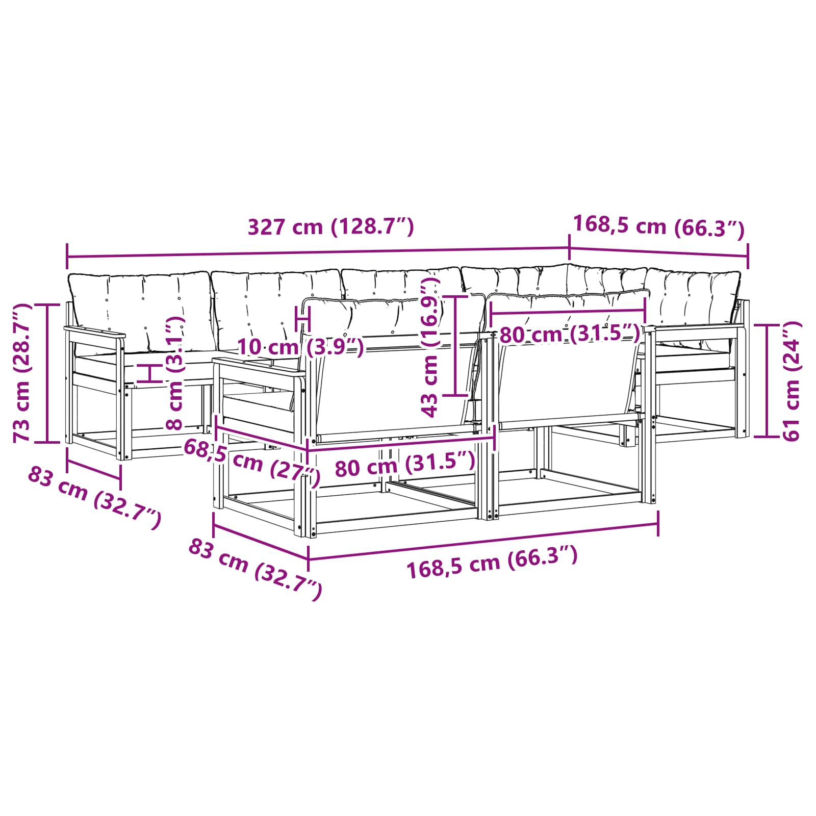- 6 x Sitzkissen: 80 x 68,5 x 8 cm (LxBxH)