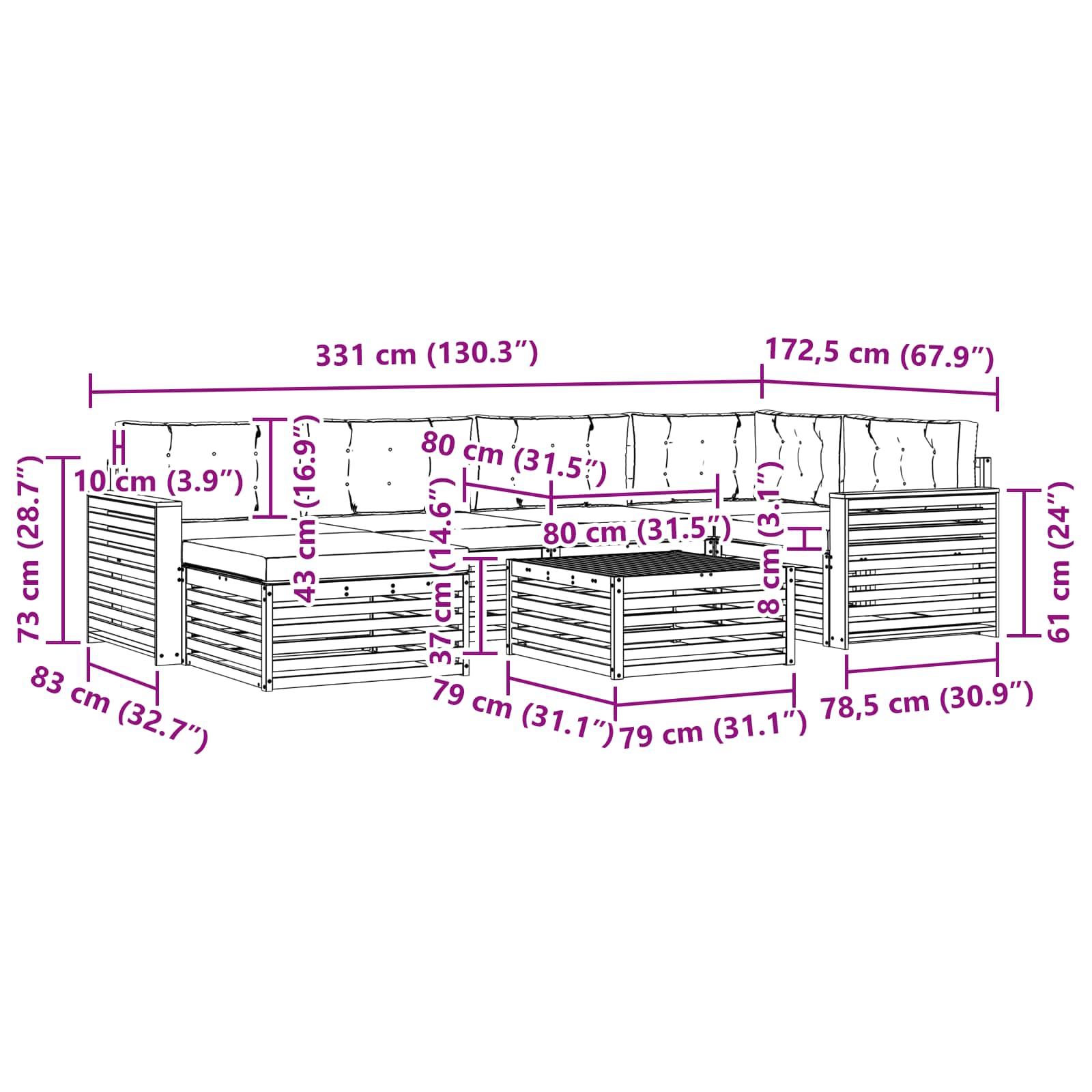 - 6 x Sitzkissen: 80 x 80 x 8 cm (LxBxH)