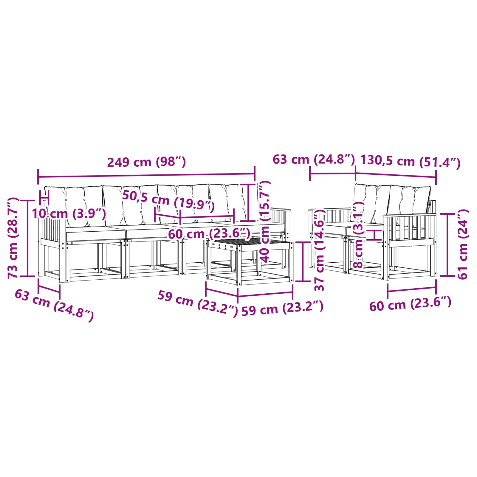 - 6 x Sitzkissen: 60 x 50,5 x 8 cm (LxBxH)
