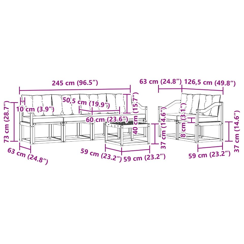 - 6 x Sitzkissen: 60 x 50,5 x 8 cm (LxBxH)