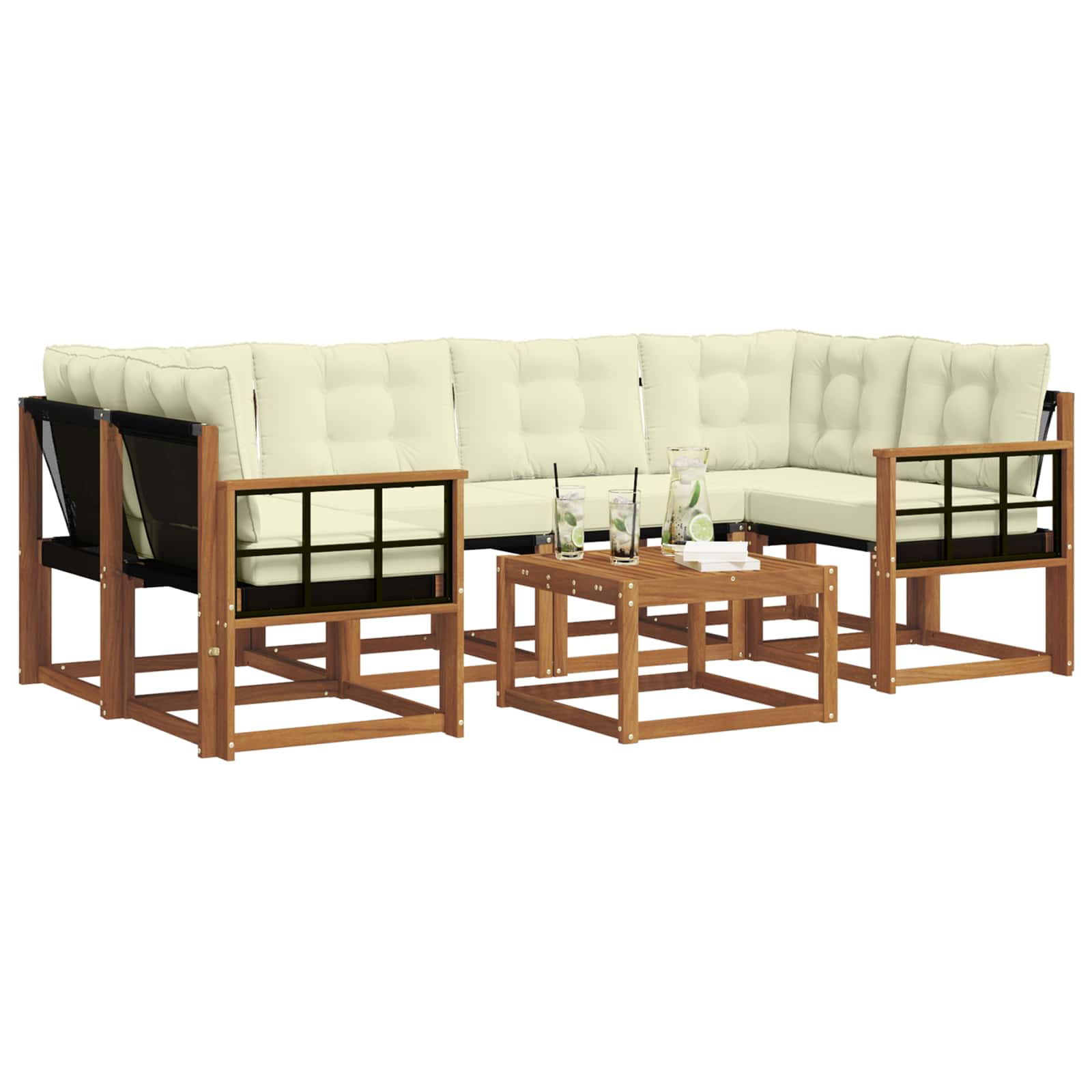 Dieses moderne Sofaset ist der Blickfang für jeden Außenbereich. Mit seinem schlanken, zeitgenössischen Design wertet es deinen Garten, deine Terrasse oder deinen Poolbereich auf. Es hat eine natürliche Holzoptik und unterstützt dich mit komfortablen Rückenlehnen und praktischen Armlehnen. Die erdigen Farbtöne fügen sich harmonisch in die Natur ein und schaffen eine einladende Atmosphäre für Treffen oder entspannte Momente. Elegante Materialkombination: Aus massivem Akazienholz und Textilene gefertigt, bringt dieses Sofaset eine schicke Holzoptik mit einer robusten Textilene-Sitzfläche. Die Materialien sind nicht nur modern, sondern sorgen auch für Langlebigkeit bei jedem Wetter und sind ein treuer Begleiter durch die Jahreszeiten. Umfassendes Komponentendesign: Mit Outdoorkissen und unterstützenden Rückenlehnen designed, ist jedes Teil des Sofasets für optimalen Komfort gemacht. Die praktischen Armlehnen und der Tisch mit Lamellen sorgen für einfache Entwässerung und machen das Set sowohl funktional als auch bequem für dein Entspannungserlebnis im Freien. Praktische Merkmale: Die UV-beständigen Eigenschaften schützen das Sofaset vor Sonnenschäden und halten die Farben lebhaft. Die abwischbaren Oberflächen machen die Pflege kinderleicht und halten das Set frisch und einladend für den täglichen Gebrauch – ideal für das Leben im Freien. Vielseitige Nutzungsmöglichkeiten: Geeignet für Garten, Terrasse, Hinterhof oder Pool, passt sich dieses Sofaset problemlos an verschiedene Außenbereiche an. Sein modernes Design ist die perfekte Ergänzung für Partys oder entspannende Tage an deinem eigenen Rückzugsort. Einfach Pflege: Mit einem durchdachten Design braucht dieses Sofaset nur wenig Pflege – einfach mit einem feuchten Tuch abwischen. Abnehmbare Kissenbezüge mit Reißverschluss machen die Reinigung zum Kinderspiel und helfen, seine Attraktivität zu bewahren.