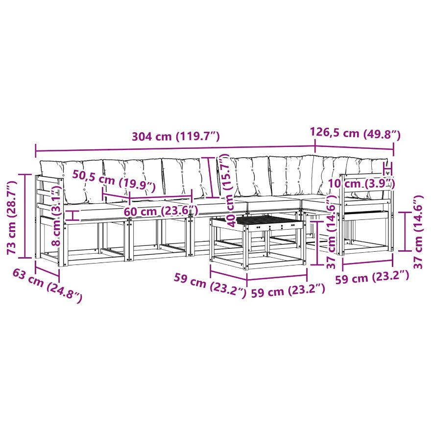 - 7 x Rückenkissen: 60 x 40 x 10 cm (LxWxH)