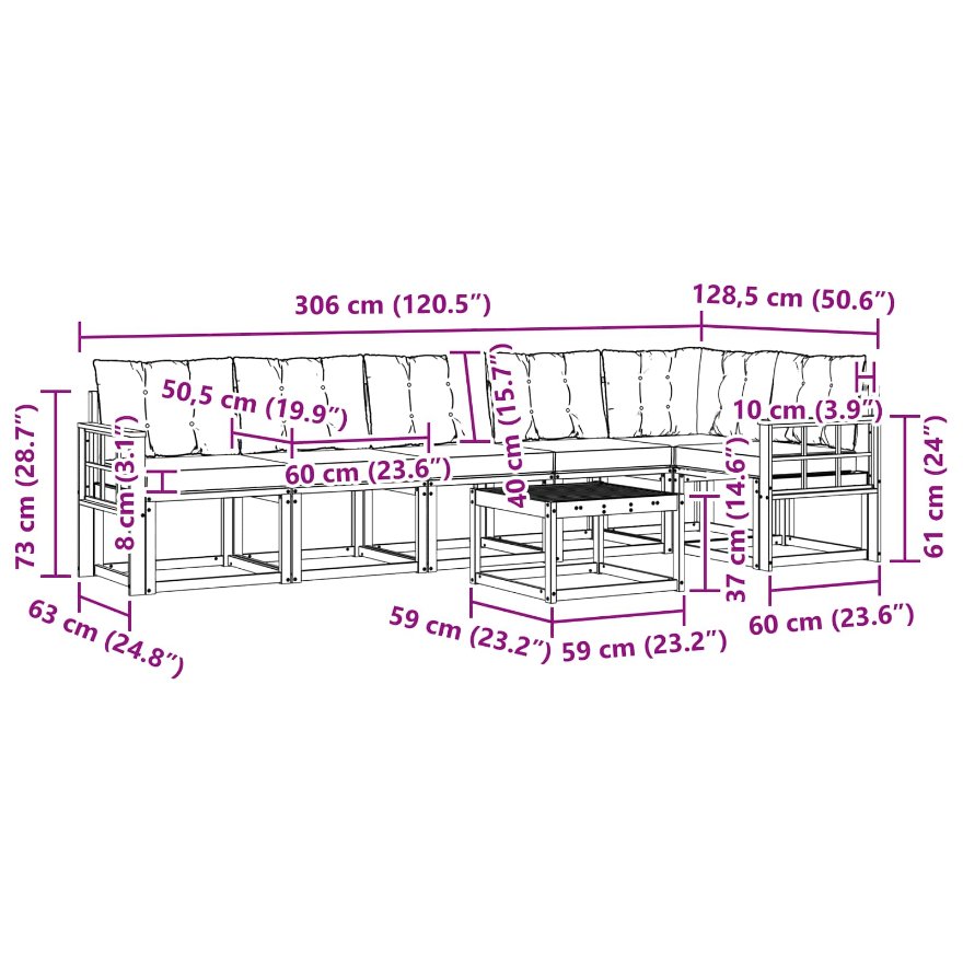 - 7 x Rückenkissen: 60 x 40 x 10 cm (LxWxH)