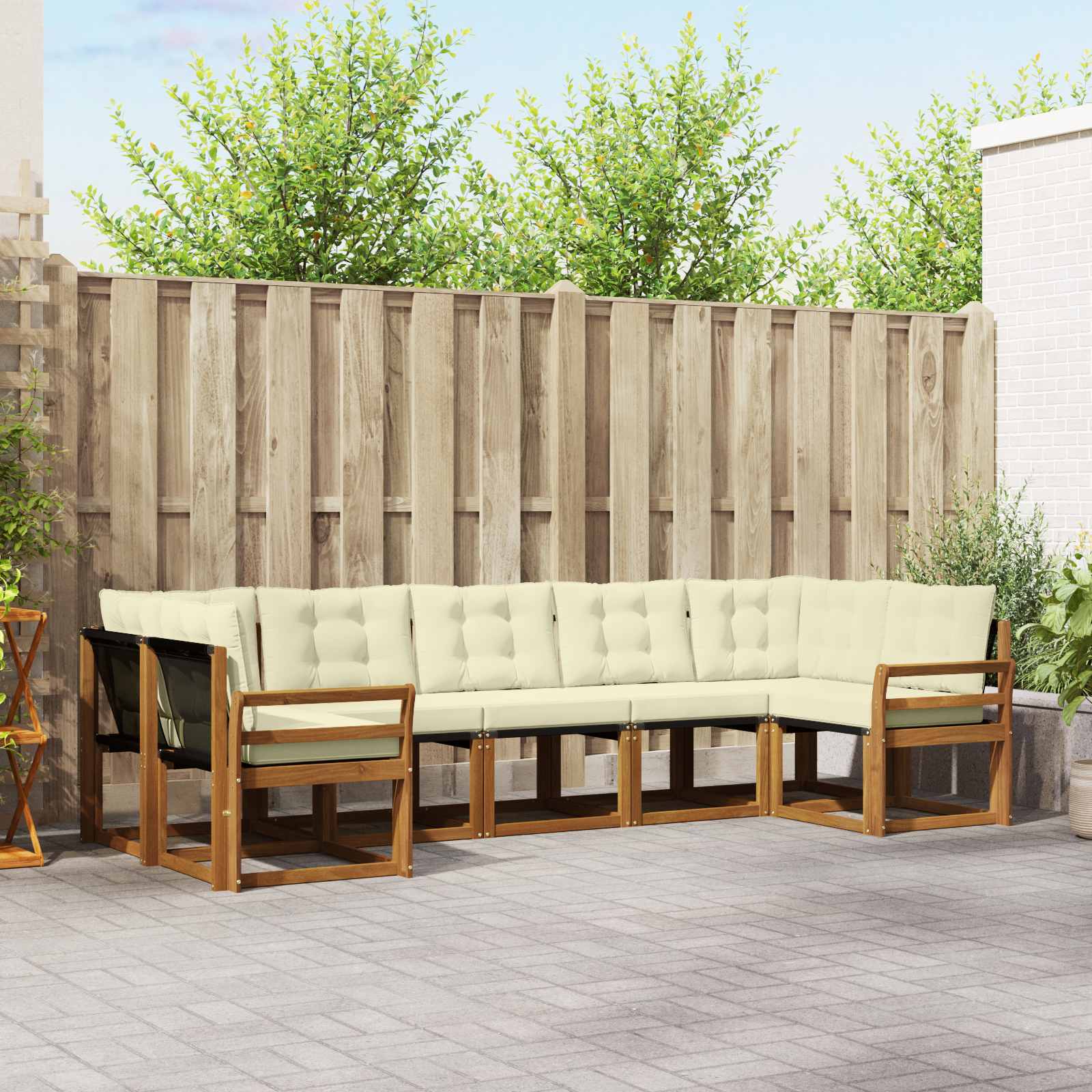 Dieses moderne Sofa-Set ist ein fünf-teiliges Möbel-Set, das deinem Außenbereich einen stylishen Touch verleiht. Es hat einen zeitgemäßen, schlichten Look mit klaren Linien – genau das Richtige für Garten, Terrasse, Hinterhof oder Pool. Die braunen und natürlichen Holzfarben harmonieren mit der Umgebung und schaffen eine entspannte Atmosphäre. Mit den dick gepolsterten Kissen bietet es optimalen Komfort und ist perfekt für jede Zusammenkunft oder Freizeitaktivität. Die robusten Materialien sorgen dafür, dass du lange Freude daran hast, selbst draußen. Natürliche Holzstruktur: Das Sofa-Set ist aus massivem Akazienholz gefertigt und hat einen eleganten, natürlichen Look. Die Wahl dieses Materials sorgt für hohe Haltbarkeit und wertet deinen Außenbereich mit einem Hauch von Stil auf. Akazienholz ist dicht und steht für Langlebigkeit, eine praktische Wahl für Gartenmöbel. Farb- und lichtbeständig: Genieße ein immer schönes, lebendiges Finish im Freien. Das farbechte Material sorgt dafür, dass die Möbel auch nach längerem Sonnenlicht frisch und neu aussehen – ohne Kompromisse bei Qualität oder Aussehen. Leicht zu reinigen: Das Sofa-Set bleibt dank dieser Funktion sauber ohne viel Aufwand. Ein einfaches Wischen mit einem feuchten Tuch entfernt Staub und Flecken, was dir Zeit und Mühe spart. Unterstützende Rückenlehne: Genieße Komfort und bessere Haltung mit den clever gestalteten Rückenlehnen. Sie bieten die Stabilität, die du beim Entspannen, Lesen oder geselligen Beisammensein im Freien brauchst. Praktische Armlehne: Die Armlehnen bieten nicht nur Stil, sondern auch zusätzliche Unterstützung, damit du noch bequemer sitzen kannst. Sie sind aus massivem Holz, stabil und langlebig.