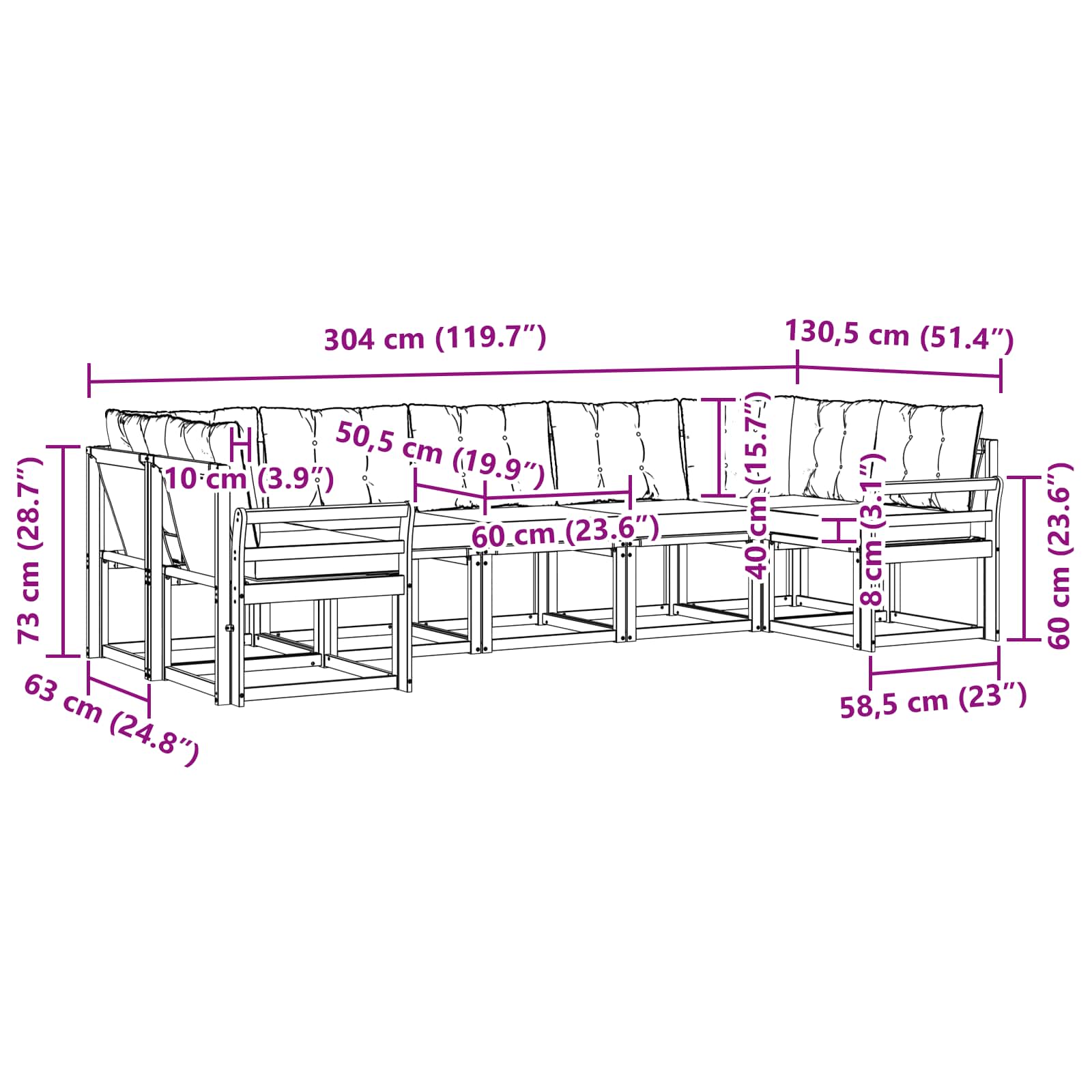 - 5 x Sitzkissen: 60 x 50,5 x 8 cm (LxBxH)