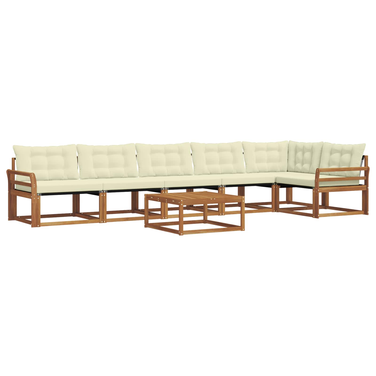 Das Außenmöbel-Set verbindet Style mit Funktion und ist ein echter Hingucker für jeden Garten oder jede Terrasse. Das moderne Design mit klaren Linien und minimalen Details bringt Eleganz und lädt zum Entspannen im Freien und zum Feiern mit Freunden ein. Hergestellt aus massivem Akazienholz sorgt das Set für Langlebigkeit und einen anhaltend schönen Look – perfekt für alle, die praktische und schicke Gartenmöbel suchen. Langlebiges Massivholz Akazie: Hergestellt aus massivem Akazienholz, ist dieses Außenset bekannt für seine Robustheit und Wetterbeständigkeit. Die solide Bauweise sorgt für starke Unterstützung und anhaltende Stabilität, während der warme Farbton jeden Garten oder jede Terrasse aufwertet. Wetterbeständiges Design: Das Außenset hat eine lackierte Oberfläche, die zusätzlichen Schutz gegen Sonne, leichten Regen und Witterung bietet. Der polierte Look sorgt dafür, dass das Set in deinem Garten, auf der Terrasse oder im Hinterhof lange gut aussieht. Komponenten & Gestaltung: Jedes Teil, von Armlehnen bis Rückenkissen, ist sowohl schick als auch praktisch gestaltet. Die unterstützenden Features sorgen für zusätzlichen Komfort, während das einheitliche Design ein harmonisches Gesamtbild für alle Outdoor-Anlässe schafft. Komfort & Vielseitigkeit: Das modulare Design ermöglicht dir flexible Anordnungen, die du je nach Raum und Bedarf anpassen kannst. Ideal für Entspannung, gesellige Runden oder ruhige Lesestunden passt sich dieses Set problemlos an jede Außenumgebung an und erhöht Komfort und Nutzen. Einfache Pflege & Wartung: Um die Möbel in Schuss zu halten, wisch einfach die Oberflächen mit einem feuchten Tuch ab und vermeide aggressive oder scheuernde Reiniger. Regelmäßige Pflege hilft, ihr Aussehen zu bewahren und die Lebensdauer der Möbel zu verlängern.
