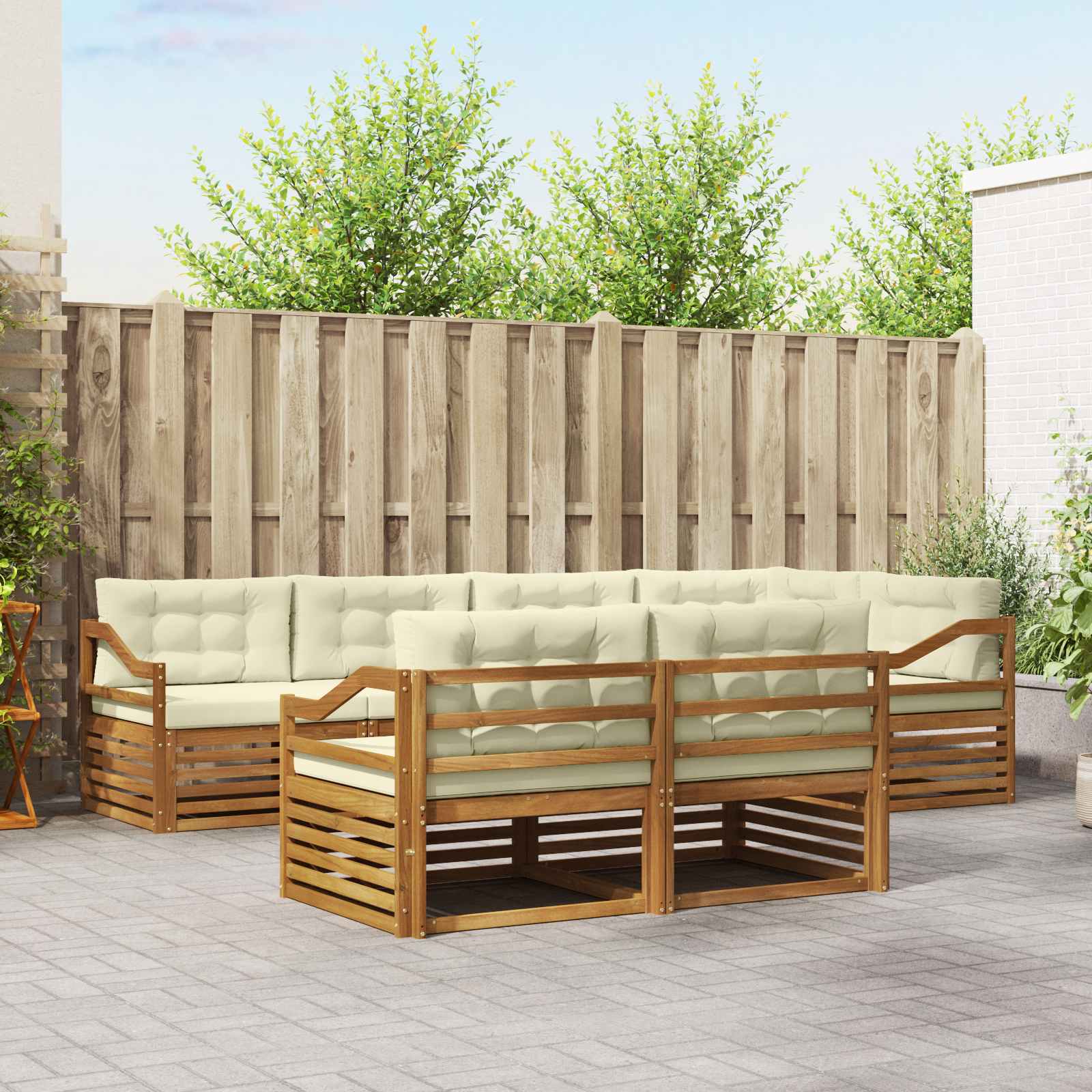 Das Outdoor-Möbelset kombiniert Style und Funktion und ist ein echter Hingucker für jeden Garten oder Terrasse. Modernes Design mit klaren Linien und wenig Schnickschnack bringt Eleganz und unterstützt entspannte Stunden im Freien. Hergestellt aus massivem Akazienholz, bietet das Set Langlebigkeit und bleibt dauerhafte optisch attraktiv – die perfekte Wahl für alle, die praktische und schicke Gartenmöbel wollen. Langlebiges Massivholz Akazie: Aus solidem Akazienholz gefertigt, bietet dieses Outdoor-Möbelset hohe Langlebigkeit und Schutz vor Witterung. Die robuste Bauweise sorgt für zuverlässige Unterstützung und Stabilität, während die warme, natürliche Farbe jedes Gartenmöbel-Set aufwertet. Wetterfestes Design: Die lackierte Oberfläche schützt vor Sonne, leichtem Regen und anderen Wettereinflüssen. Das polierte Finish bewahrt Aussehen und Funktionalität, damit das Set lange Freude im Garten, auf der Terrasse oder im Hinterhof bietet. Komponenten & Design: Jedes Teil, ob Armlehnen oder Rückenlehnen, ist für Stil und Funktion geplant. Unterstützende Merkmale garantieren zusätzlichen Komfort, während das harmonische Design ein ansprechendes Gesamtbild für verschiedene Außenanlässe schafft. Komfort & Vielseitigkeit: Das modulare Design ermöglicht flexible Sitzanordnungen, die sich deinem Raum und deinen Bedürfnissen anpassen. Perfekt zum Entspannen, für gesellige Abende oder ruhige Lesestunden, passt sich das Set mühelos jeder Außenumgebung an und sorgt für maximalen Komfort. Einfache Pflege & Wartung: Halte die Möbel in gutem Zustand, indem du die Oberfläche mit einem feuchten Tuch abwischst und aggressive Reiniger vermeidest. Regelmäßige Pflege hilft, das Aussehen zu bewahren und die Lebensdauer der Möbel zu verlängern.