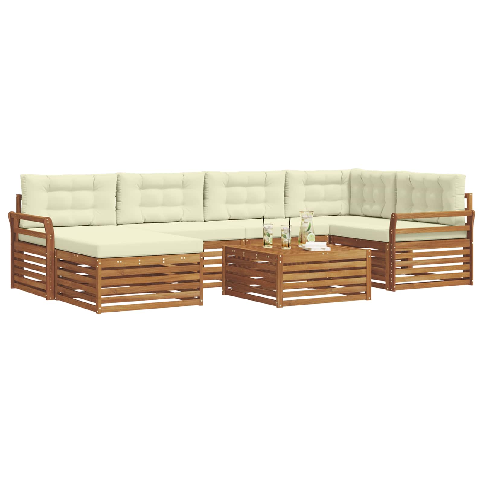 Das Outdoor-Möbelset kombiniert Stil und Funktionalität und wird zum Blickfang in jedem Garten oder auf jeder Terrasse. Mit seinem modernen Design, das durch klare Linien und minimalistischen Details besticht, bringt es Eleganz und unterstützt die entspannte Atmosphäre im Freien und gesellige Zusammenkünfte. Komplett aus Akazienholz gefertigt, bietet das Set Langlebigkeit und behält seine Attraktivität, was es zur perfekten Wahl für alle macht, die praktisches und schickes Design in Gartenmöbeln suchen. Langlebiges Akazienholz: Das Outdoor-Möbelset aus Massivholz Akazie ist bekannt für seine Robustheit und Wetterfestigkeit. Die stabile Konstruktion bietet verlässlichen Halt und dauerhaften Komfort, während der warme Braunton jeden Garten oder jede Terrasse aufwertet. Wetterfestes Design: Das Outdoor-Möbelset hat eine lackierte Oberfläche, die zusätzlichen Schutz gegen Sonne, leichten Regen und Wetter bietet. Das polierte Finish sorgt dafür, dass Aussehen und Funktion optimal bleiben und gewährleistet eine lange Haltbarkeit für deinen Garten oder deine Terrasse. Komponenten & Design: Jedes Stück, von Armlehnen bis Rückenlehnen, ist für Stil und Funktionalität entworfen. Unterstützende Merkmale sorgen für mehr Komfort, während das durchgängige Design ein harmonisches Gesamtbild für verschiedene Outdoor-Anlässe schafft. Komfort & Vielseitigkeit: Das modulare Design erlaubt flexible Anordnungen, um unterschiedlichen Bedürfnissen gerecht zu werden. Ob zum Entspannen, für gesellige Runden oder ruhige Lesemomente, dieses Set passt sich perfekt jeder Outdoor-Umgebung an und sorgt für maximalen Komfort. Einfache Pflege: Um die Möbel in gutem Zustand zu halten, wische die Oberfläche einfach mit einem feuchten Tuch ab und verwende keine scharfen Reinigungsmittel. Regelmäßige Pflege hält ihr Aussehen frisch und verlängert die Lebensdauer der Möbel.