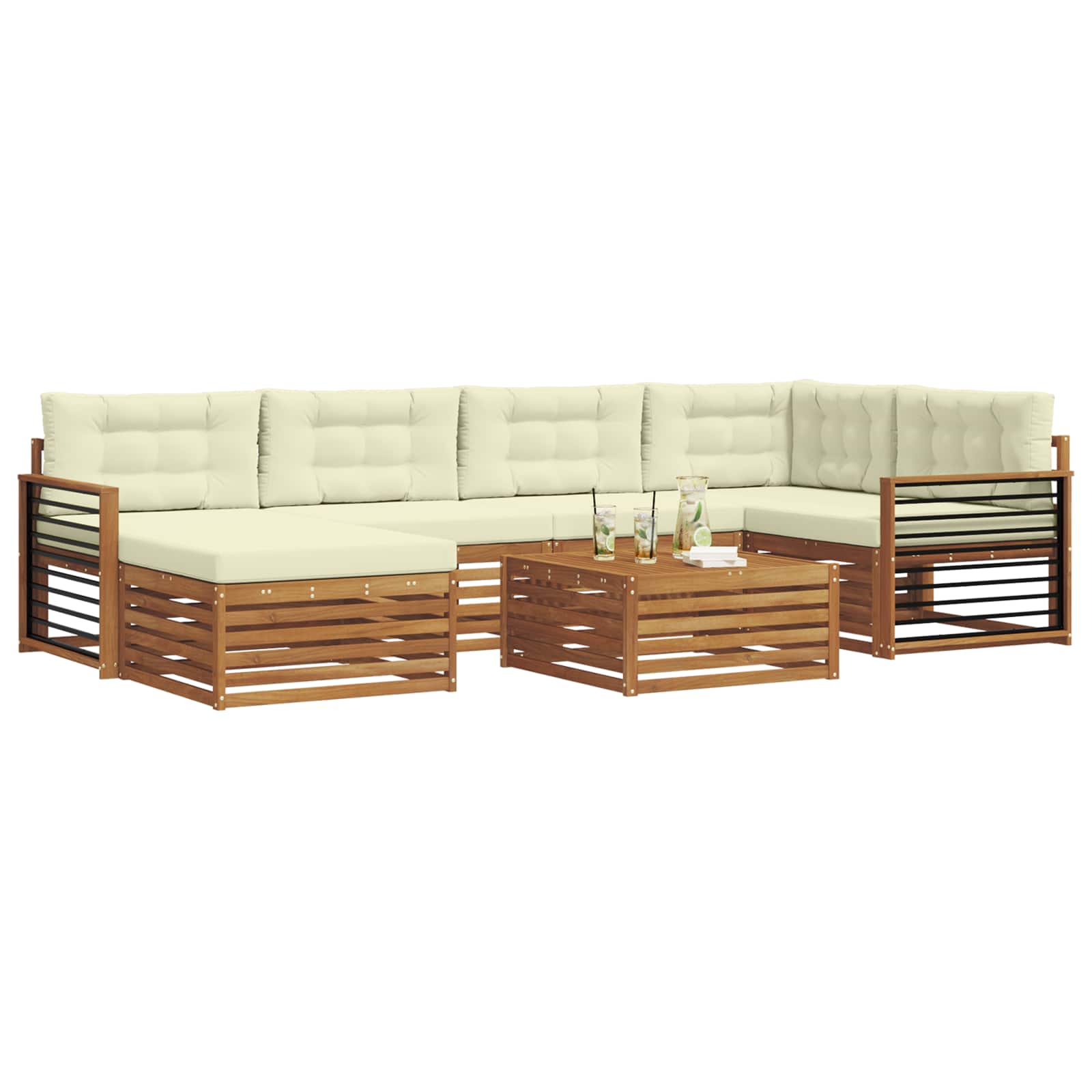 Das Outdoor-Möbelset kombiniert Stil und Funktionalität und wird zum Blickfang in jedem Garten oder auf jeder Terrasse. Mit seinem modernen Design, das durch klare Linien und minimalistischen Details besticht, bringt es Eleganz und unterstützt die entspannte Atmosphäre im Freien und gesellige Zusammenkünfte. Komplett aus Akazienholz gefertigt, bietet das Set Langlebigkeit und behält seine Attraktivität, was es zur perfekten Wahl für alle macht, die praktisches und schickes Design in Gartenmöbeln suchen. Langlebiges Akazienholz: Das Outdoor-Möbelset aus Massivholz Akazie ist bekannt für seine Robustheit und Wetterfestigkeit. Die stabile Konstruktion bietet verlässlichen Halt und dauerhaften Komfort, während der warme Braunton jeden Garten oder jede Terrasse aufwertet. Wetterfestes Design: Das Outdoor-Möbelset hat eine lackierte Oberfläche, die zusätzlichen Schutz gegen Sonne, leichten Regen und Wetter bietet. Das polierte Finish sorgt dafür, dass Aussehen und Funktion optimal bleiben und gewährleistet eine lange Haltbarkeit für deinen Garten oder deine Terrasse. Komponenten & Design: Jedes Stück, von Armlehnen bis Rückenlehnen, ist für Stil und Funktionalität entworfen. Unterstützende Merkmale sorgen für mehr Komfort, während das durchgängige Design ein harmonisches Gesamtbild für verschiedene Outdoor-Anlässe schafft. Komfort & Vielseitigkeit: Das modulare Design erlaubt flexible Anordnungen, um unterschiedlichen Bedürfnissen gerecht zu werden. Ob zum Entspannen, für gesellige Runden oder ruhige Lesemomente, dieses Set passt sich perfekt jeder Outdoor-Umgebung an und sorgt für maximalen Komfort. Einfache Pflege: Um die Möbel in gutem Zustand zu halten, wische die Oberfläche einfach mit einem feuchten Tuch ab und verwende keine scharfen Reinigungsmittel. Regelmäßige Pflege hält ihr Aussehen frisch und verlängert die Lebensdauer der Möbel.