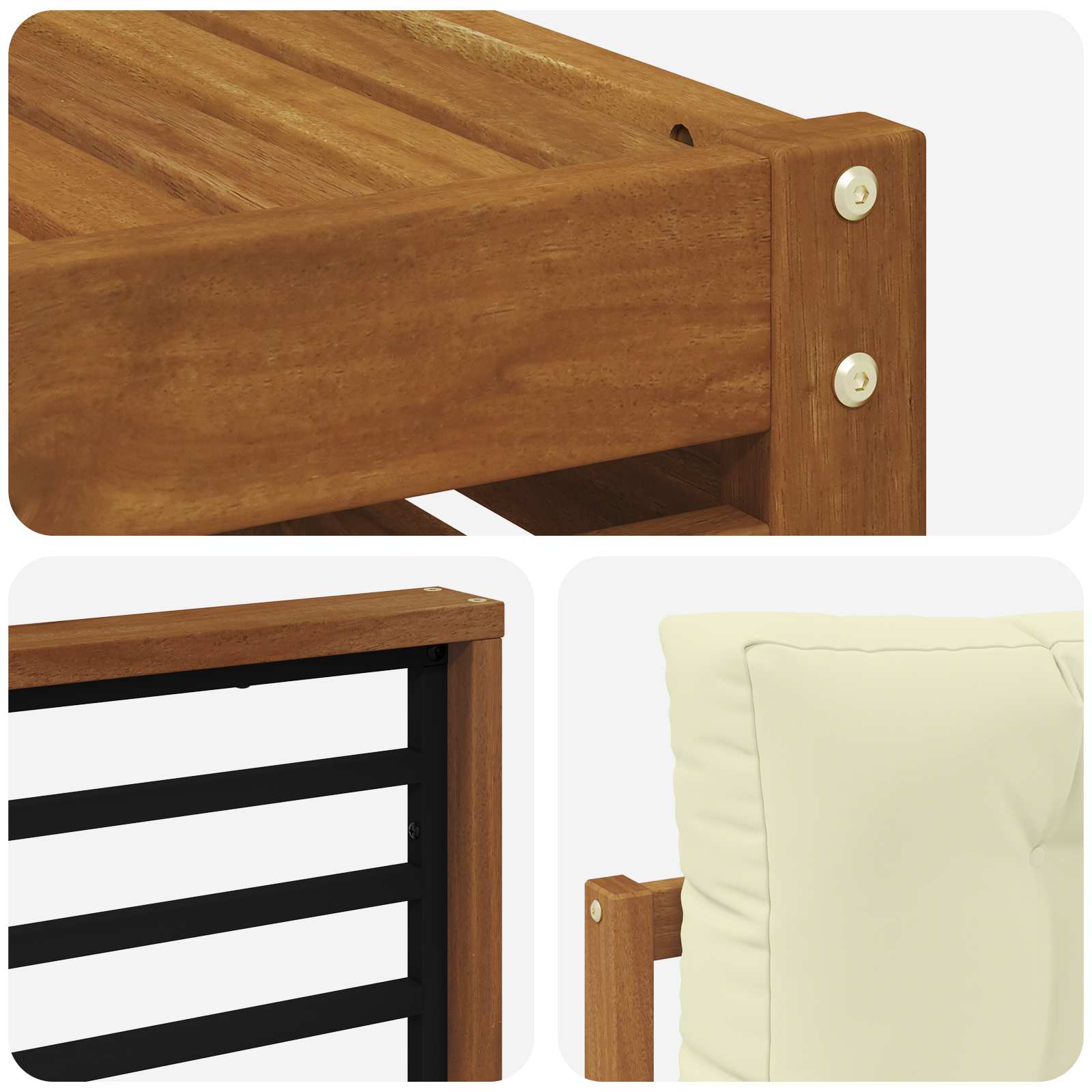 - Material: Massives Akazienholz und Polyester