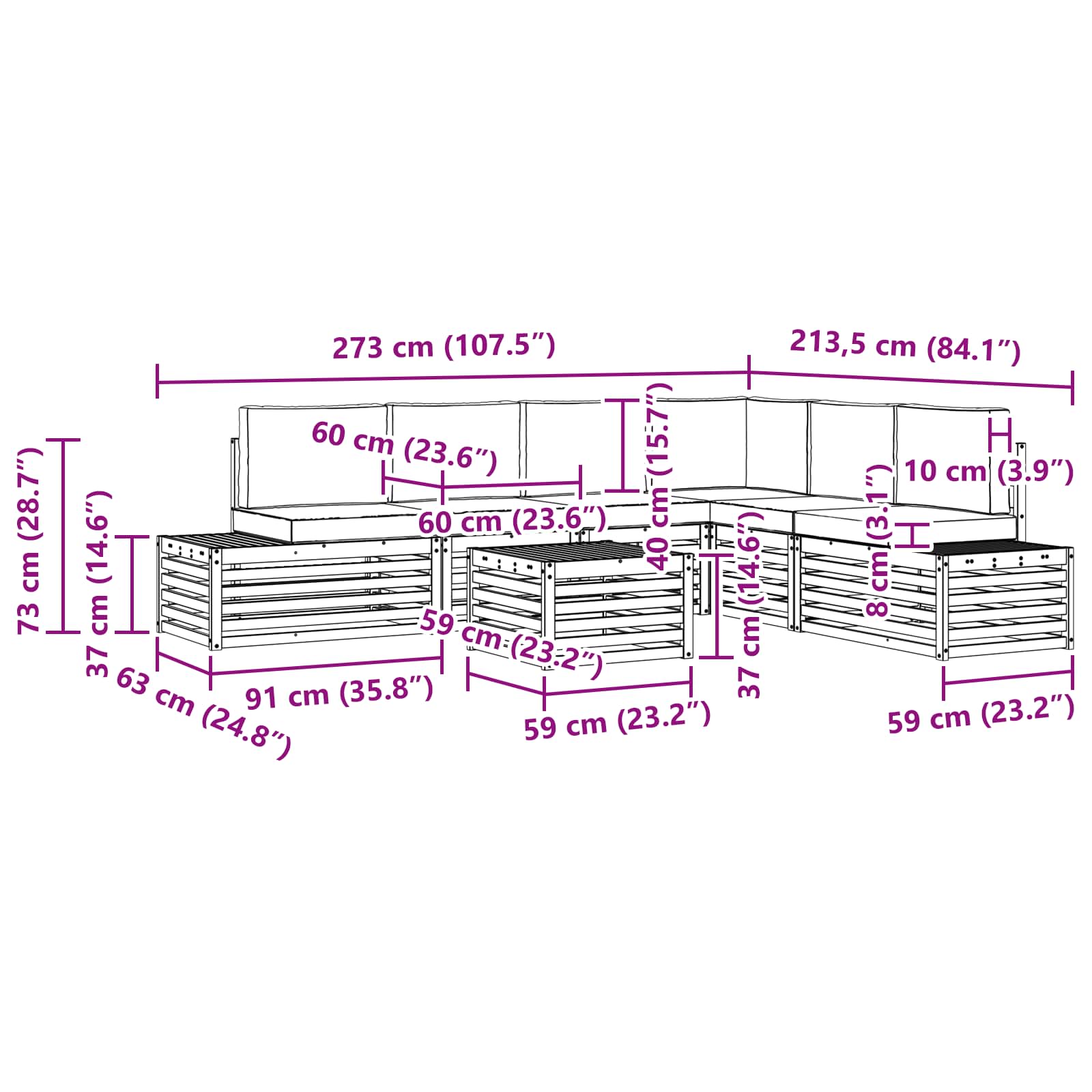 - 6 x Sitzkissen: 60 x 60 x 8 cm (LxBxH)