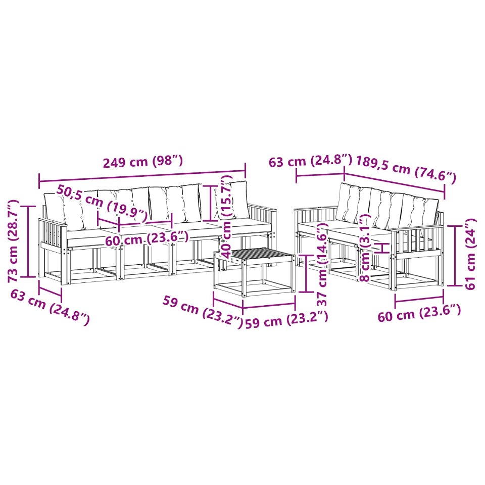 - 7 x Sitzkissen: 60 x 50,5 x 8 cm (LxBxH)