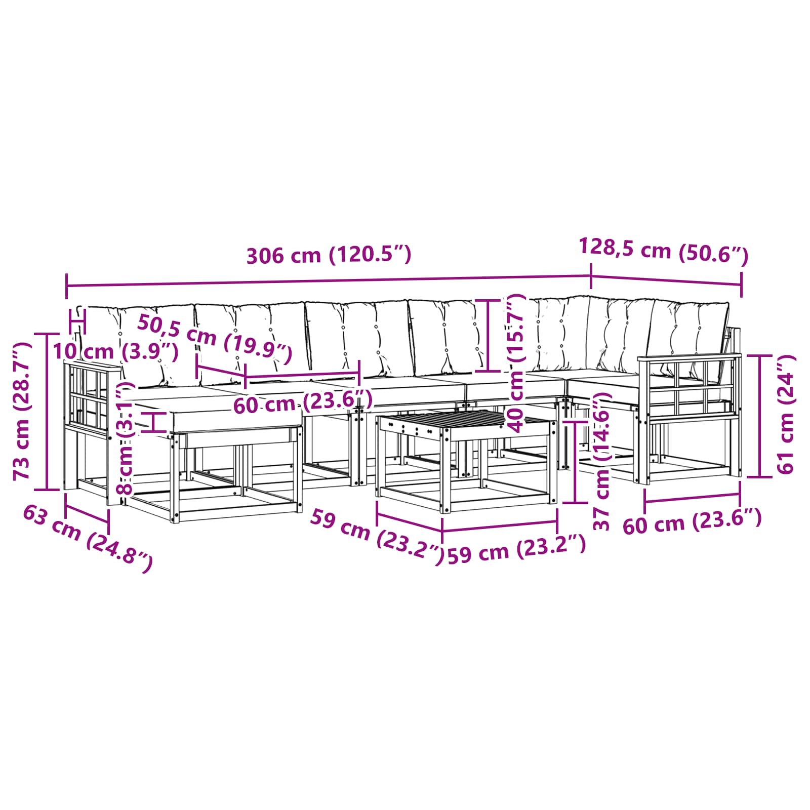 - 5 x Sitzkissen: 60 x 50,5 x 8 cm (LxWxH)