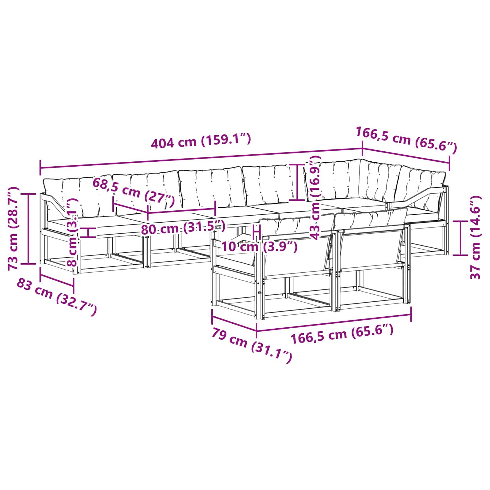 - 9 x Rückenkissen: 80 x 43 x 10 cm (LxBxH)