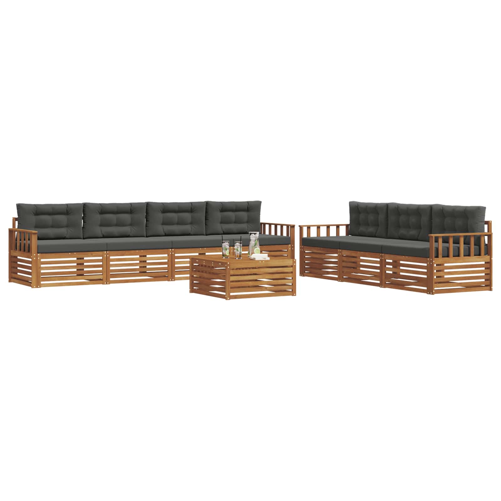 Das Gartenmöbelset kombiniert Stil und Funktion zu einem echten Hingucker für jeden Garten oder jede Terrasse. Das moderne Design mit klaren Linien sorgt für Eleganz und ist perfekt für entspannte Stunden im Freien oder gesellige Treffen mit Freunden. Aus massivem Akazienholz gefertigt, bietet das Set nicht nur Langlebigkeit, sondern sieht auch klasse aus. Es ist die ideale Wahl für alle, die praktische und schöne Gartenmöbel suchen. Langlebiges Massivholz Akazie: Hergestellt aus robustem Akazienholz ist dieses Outdoor-Möbelset nicht nur langlebig, sondern auch widerstandsfähig gegen alle äußeren Einflüsse. Die starke Bauweise sorgt für Stabilität, während der warme Farbton deinem Garten oder deiner Terrasse einen schönen Akzent verleiht. Wetterfeste Konstruktion: Die Möbel haben eine lackierte Oberfläche, die zusätzlichen Schutz gegen Sonne, Regen und andere Witterungen bietet. Das macht sie pflegeleicht und sorgt für eine lange Lebensdauer, egal ob im Garten, auf der Terrasse oder im Hinterhof. Komponenten & Design: Jedes Teil vom Rahmen bis zu den Rückenlehnen ist durchdacht gestaltet. Die unterstützenden Features sorgen für zusätzlichen Komfort, während das harmonische Design zu einem tollen Gesamtbild beiträgt, das bei allen Anlässen im Freien passt. Komfort & Vielseitigkeit: Das modulare Design lässt sich flexibel an verschiedene Räume und Bedürfnisse anpassen. Ideal für ruhige Lesemomente, gesellige Abende oder einfach zum Relaxen – dieses Set macht in jeder Umgebung eine gute Figur und bietet maximalen Komfort. Einfache Pflege & Wartung: Um die Möbel schön zu halten, wische die Oberfläche mit einem feuchten Tuch ab und verwende keine starken Reiniger. So bleibt das Aussehen erhalten und die Lebensdauer der Möbel verlängert sich.