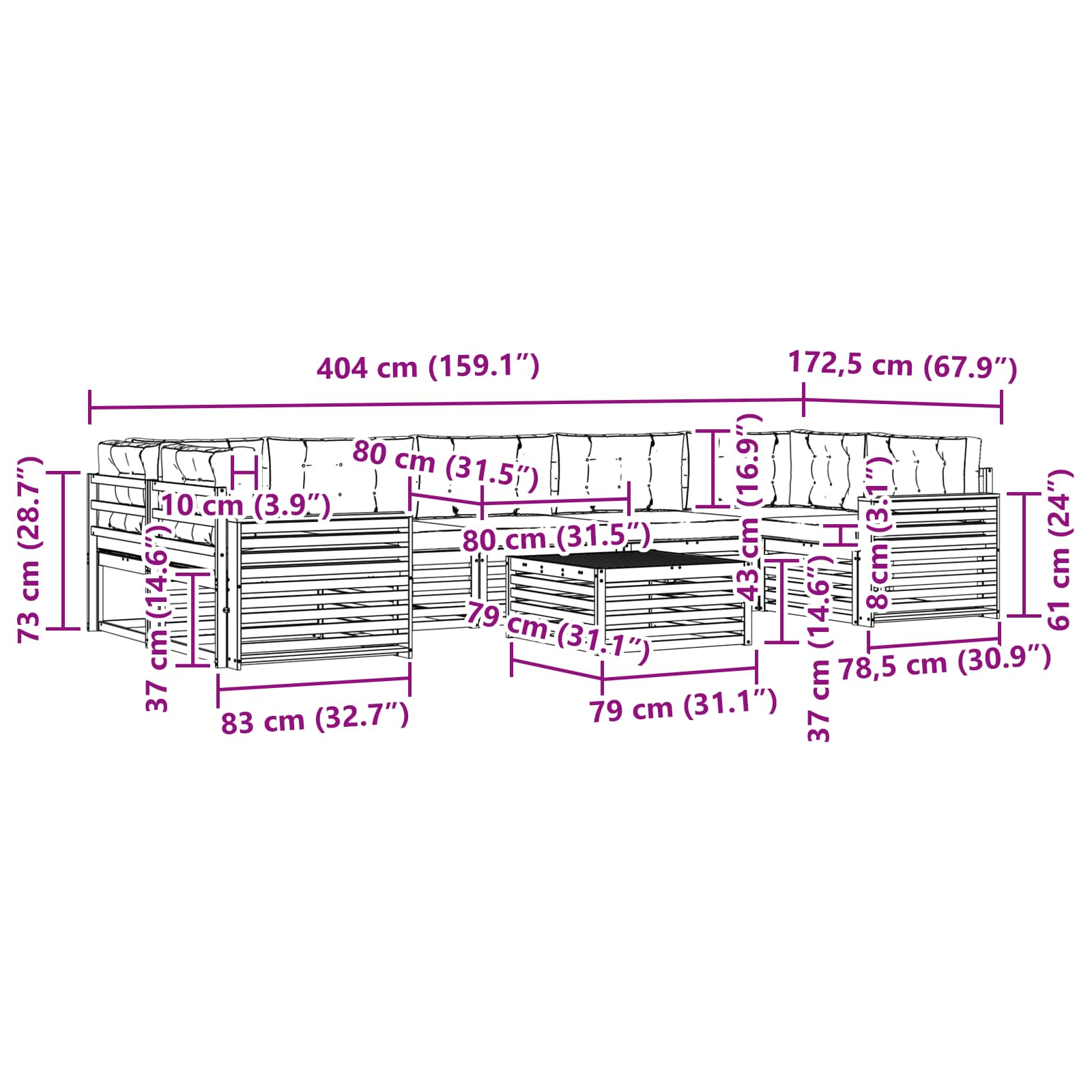 - 9 x Rückenkissen: 80 x 43 x 10 cm (LxBxH)