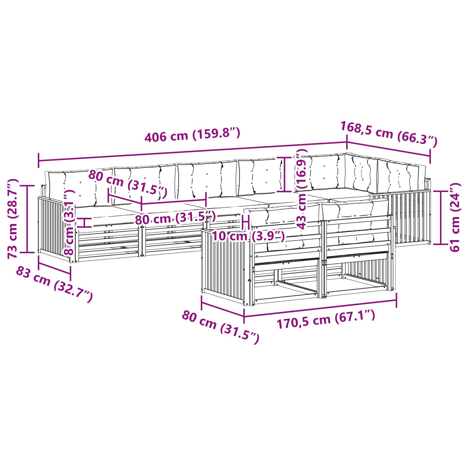 - 8 x Sitzkissen: 80 x 80 x 8 cm (LxBxH)