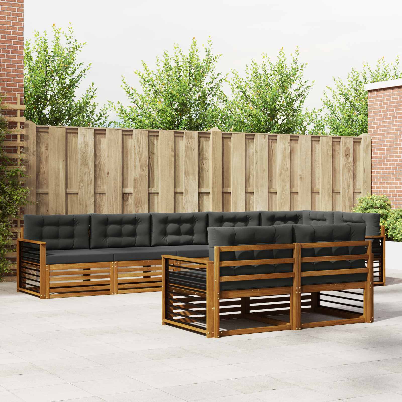 Dieses Outdoor-Sofa-Set vereint moderne Eleganz mit praktischem Komfort und passt super in jeden Garten oder auf jede Terrasse. Die schlichte und klare Ästhetik wird durch den minimalistischen Stil und den warmen Farbton des massiven Akazienholzes geprägt. Ideal zum Entspannen im Freien – es kombiniert Langlebigkeit mit der Flexibilität eines modularen Designs, das kreative Anordnungen erlaubt, ob für Entspannung, Unterhaltung oder lockere Gespräche. Jedes Element wertet das Gartenambiente auf und schafft eine einladende Atmosphäre für Zusammenkünfte oder für ruhige Momente ganz für sich. Massive Materialien: Das Sofaset besteht komplett aus solidem Akazienholz und bietet eine stabile, langlebige Grundlage für den Außenbereich. Die natürliche Maserung und warmen Brauntöne sorgen für einen schönen, harmonischen Look. Diese Materialwahl steht für Zuverlässigkeit und Haltbarkeit, denn Akazie hält der Witterung stand und sieht auch nach Jahren noch gut aus. Funktion und Design: Mit dem modularen Rahmen kannst du das Sofa nach deinen Räumen und Sitzbedürfnissen umstellen. Der Lattenrücken sorgt für eine bequeme Lehne und gute Luftzirkulation, was an heißen Tagen besonders wichtig ist. Ergonomische Armlehnen bieten zusätzlichen Komfort für längere Aufenthalte. Vielseitige Komponenten: Dank des stabilen Lattenrahmens ist dieses Stück auch bei häufigem Gebrauch beständig und lädt zum Entspannen ein. Die warmen braunen Arm- und Rückenlehnen ergänzen die robuste Struktur perfekt und bringen Stil und Komfort zusammen. Ideal für sonnige Gärten und lebendige Terrassen. Moderne Anpassungsfähigkeit: Stilvoll und minimalistisch, zeigt sich das Sofa-Set in einem modernen Design mit klaren Linien. Perfekt für zeitgenössische Außenbereiche, erfüllt es funktionale und stilvolle Ansprüche und schafft eine entspannende Atmosphäre, die man mit Freunden teilen oder allein genießen kann. Einfache Pflege: Um das schöne Aussehen zu bewahren, reicht es, es mit einem feuchten Tuch abzuwischen. Diese einfache Pflege sorgt dafür, dass das Sofa-Set immer attraktiv aussieht, auch wenn viel Betrieb herrscht oder sich die Jahreszeiten ändern.