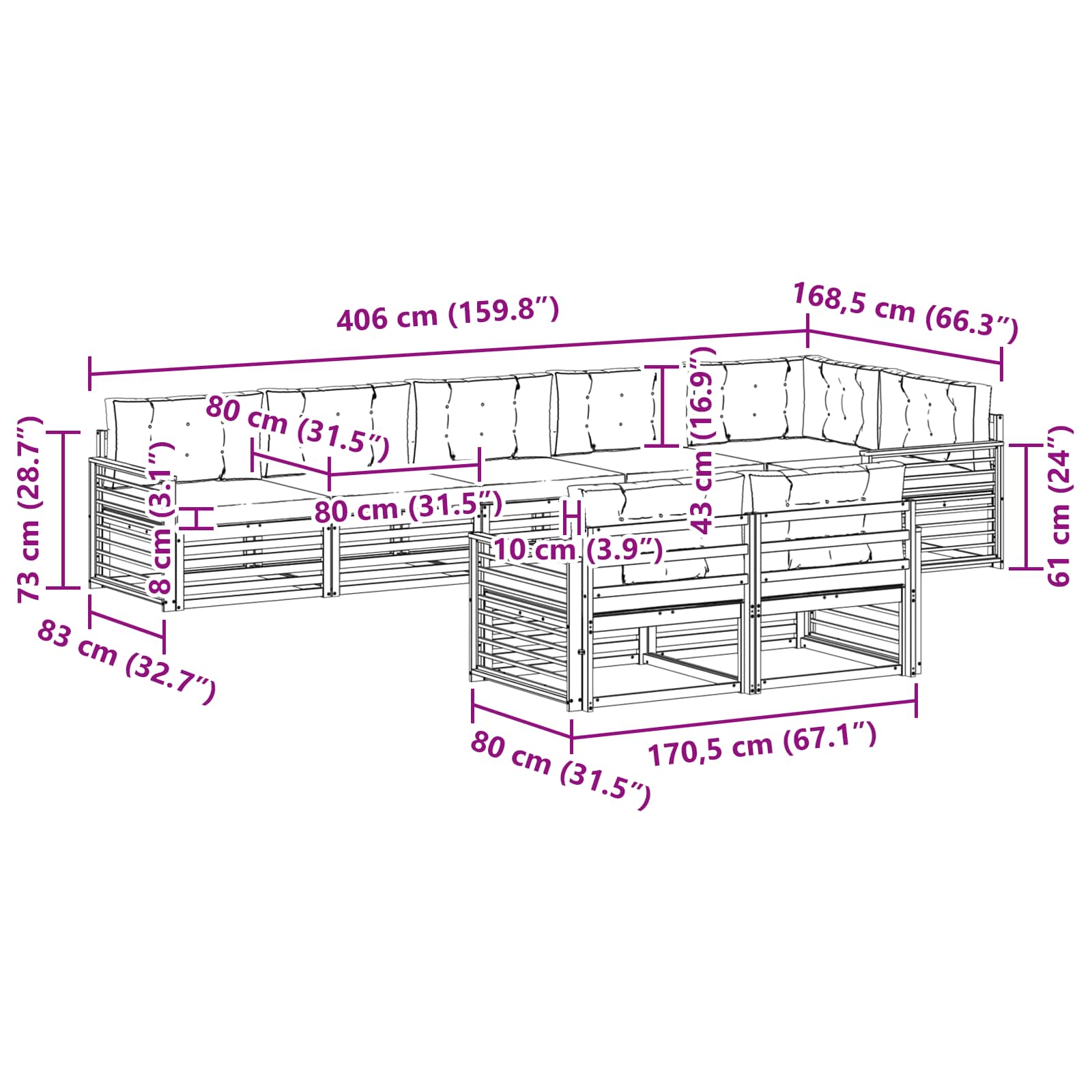 - 8 x Sitzkissen: 80 x 80 x 8 cm (LxBxH)