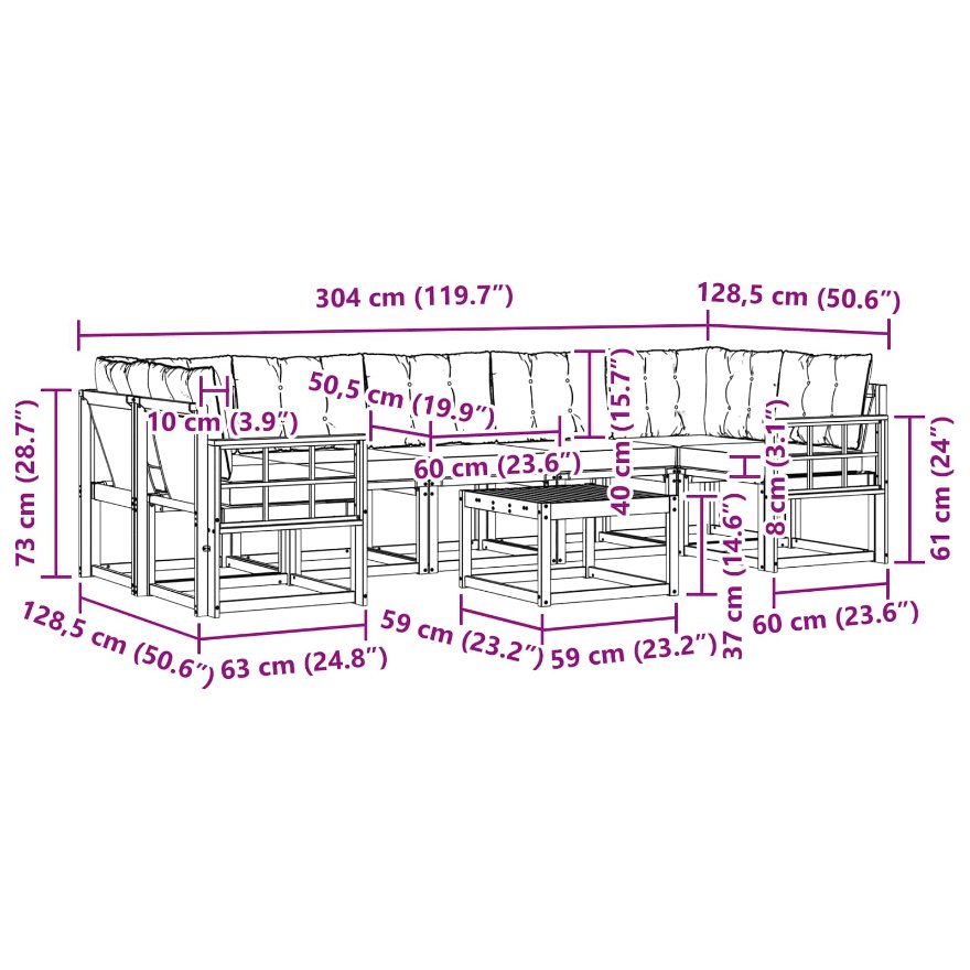 - 9 x Rückenkissen: 60 x 40 x 10 cm (LxBxH)
