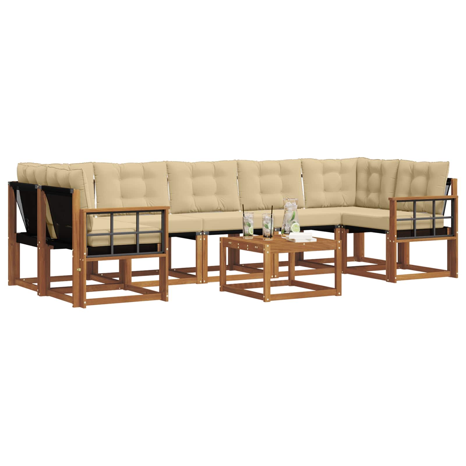 Dieses moderne Sofa-Set bringt coolen Stil ins Freie und ist perfekt für alle, die Entspannung, Komfort und Chic unter freiem Himmel wollen. Das schlanke Design kommt in tollen Brauntönen, die sicher in jedem Garten oder Poolbereich gut aussehen. Die Kombination aus solidem Akazienholz und pflegeleichtem Texilene sorgt für einladende Atmosphäre, egal ob du eine Sommerparty schmeißt oder einfach mal chillst. Die bequemen Kissen und natürlichen Motive garantieren Funktionalität und optische Anziehung. Materialien: Unser Sofa-Set besteht aus solidem Akazienholz, das für seine Stärke und Widerstandsfähigkeit gegen Feuchtigkeit bekannt ist. Dadurch hält es lange im Freien. Zusammen mit Texilene gibt's eine bequeme Sitzfläche, die das Wetter gut aushält und dazu natürlich aussieht. Funktionales Design: Jedes Teil dieses Sets, von dem Tisch bis zur Rückenlehne, ist clever designed, um das Nutzererlebnis zu verbessern. Der Tisch lässt Regenwasser schnell ablaufen, um Pfützen zu vermeiden, und sieht dabei cool aus. Die integrierte Rückenlehne sorgt für besten Komfort beim Entspannen. Praktische Funktionen: Die Nutzer werden die hübschen Kissen lieben, die bequem sind, und die praktische Armlehne, die für noch mehr Entspannung sorgt. Die Kissen haben Reißverschlüsse, was nützlich ist, um sie einfach zu reinigen oder auszutauschen. So bleiben sie lange hygienisch und sehen gut aus. Vielseitiger Nutzen: Ideal für Gärten, Terrassen oder Pools – dieses Sofa-Set erfüllt alle Anforderungen im Freien. Das moderne Design passt sich super an viele Umgebungen an und ist perfekt fürs Chillen oder für lässige Feiern. Wenig Pflege erforderlich: Pflege ist easy; Ein feuchtes Tuch reicht aus, um alles sauber zu halten. Die Polyester-Texilene schützt vor Verblassen. So bleibt das Set auch nach vielen Saisons frisch und einladend.