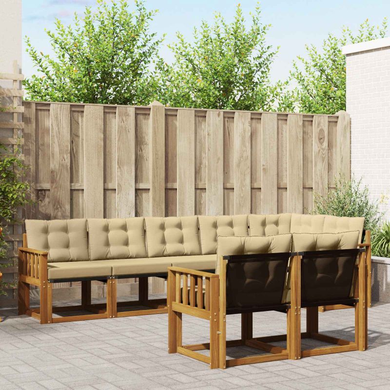 Das Gartenmöbel-Set verbindet Stil und Funktion und wird zum Blickfang in deinem Garten oder auf deiner Terrasse. Das moderne Design mit klaren Linien und minimalistischem Stil strahlt Eleganz aus und sorgt gleichzeitig für Entspannung und gesellige Runden im Freien. Aus solide Akazienholz konstruiert, ist das Set langlebig und sieht auch nach langer Zeit noch gut aus und ist perfekt für alle, die praktische und schicke Gartenmöbel wollen. Langlebiges Massivholz Akazie: Aus solidem Akazienholz geformt, ist dieses Gartenmöbel-Set extrem widerstandsfähig gegen Witterungseinflüsse. Die stabile Bauweise sorgt für zuverlässige Unterstützung und langanhaltende Stabilität, während der warme Farbton jeden Garten oder jede Terrasse aufwertet. Wetterfestes Design: Mit seiner lackierten Oberfläche bietet dieses Set zusätzlichen Schutz gegen Sonne, leichten Regen und andere Witterungsbedingungen. Der glänzende Abschluss hilft, sowohl das Aussehen als auch die Funktion zu bewahren und sorgt für langlebigen Nutzen in deinem Garten oder auf deiner Terrasse. Komponenten & Design: Jedes Teil, von den Armlehnen bis zu den Rückenlehnen, ist für Stil und Funktion durchdacht. Unterstützende Funktionen sorgen für extra Komfort, während das harmonische Design ein visuell ansprechendes Gesamtbild schafft, das für verschiedene Outdoor-Anlässe passt. Komfort & Vielseitigkeit: Das modulare Design ermöglicht flexible Konfigurationen, die zu deinem Platz und deinen Bedürfnissen passen. Egal ob zum Entspannen, für gesellige Abende oder ruhige Lesemomente – das Set passt sich problemlos jeder Outdoor-Umgebung an und maximiert sowohl Komfort als auch Nutzungsmöglichkeiten. Einfache Pflege & Wartung: Damit die Möbel gut in Schuss bleiben, wische die Oberfläche einfach mit einem feuchten Tuch ab und verwende keine aggressiven Reinigungsmittel. Regelmäßige Pflege hilft, ihr Aussehen zu bewahren und die Lebensdauer zu verlängern.