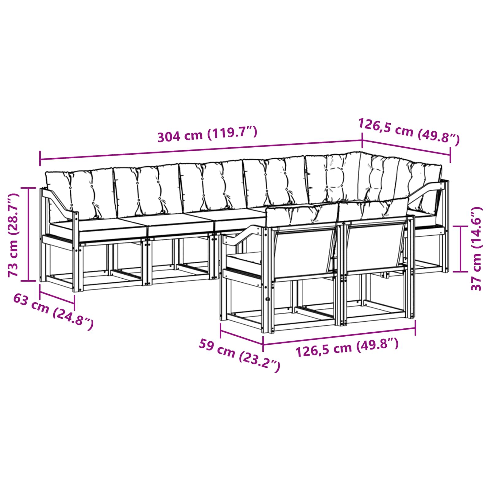 - 7 x Sitzkissen: 60 x 50,5 x 8 cm (LxBxH)