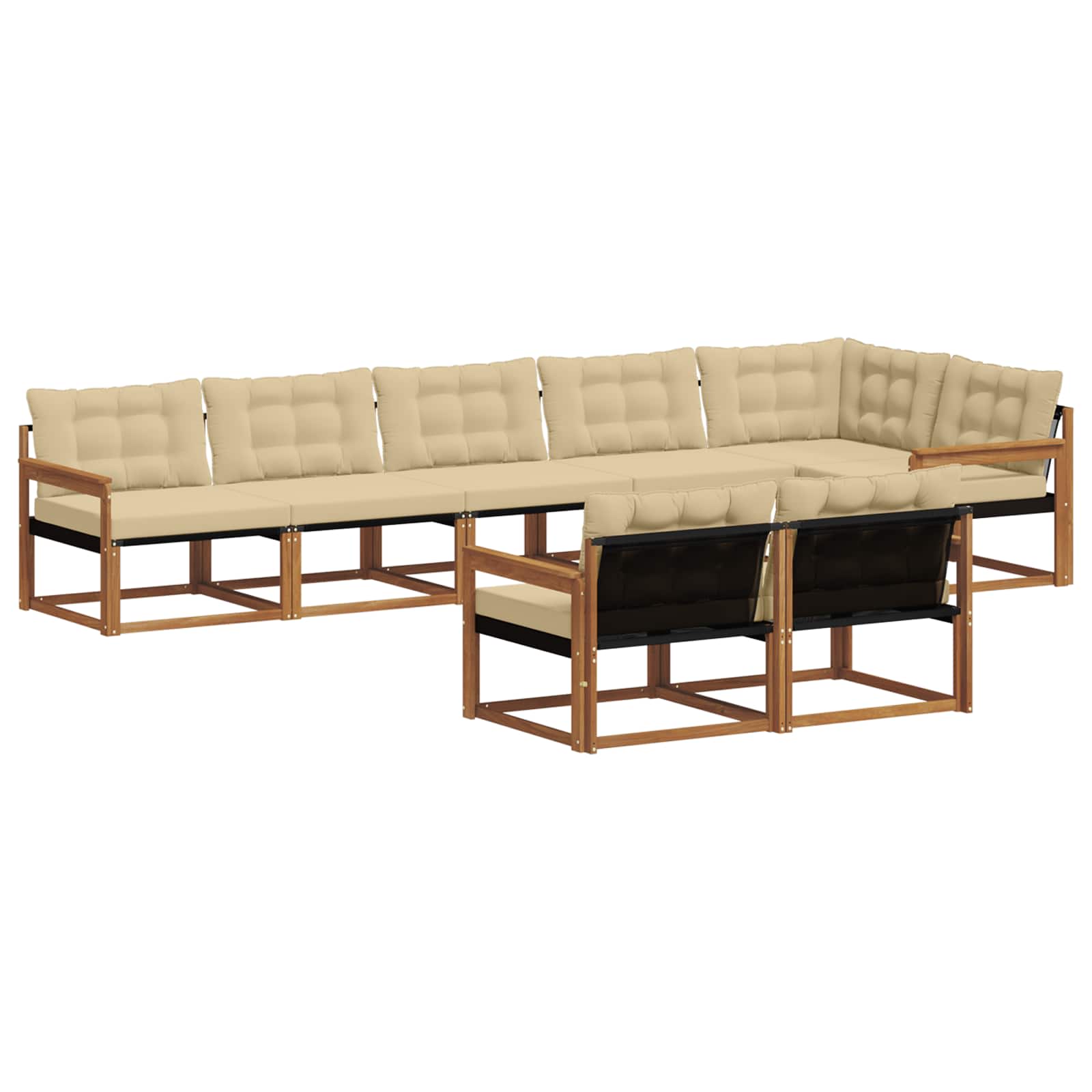 Das Outdoor-Möbelset kombiniert Stil und praktische Funktionen zu einem echten Hingucker für jeden Garten oder jede Terrasse. Sein modernes Design mit klaren Linien und minimalistischen Details bringt Eleganz und unterstützt die Entspannung im Freien sowie gesellige Zusammenkünfte. Komplett aus massivem Akazienholz gefertigt, sorgt das Set für hohe Langlebigkeit und sieht dabei toll aus, sodass es die perfekte Wahl für alle ist, die praktische und schicke Designs im Outdoor-Bereich suchen. Massives Akazienholz: Dieses Outdoor-Möbelset besteht aus solidem Akazienholz, das für seine Langlebigkeit und Widerstandsfähigkeit gegen die Witterung bekannt ist. Die stabile Bauweise bietet zuverlässige Unterstützung und sorgt für dauerhaften Halt, während der warme Ton jeden Garten oder jede Terrasse aufwertet. Wetterfester Schutz: Dank der lackierten Oberfläche hat dieses Möbelset eine extra Schutzschicht gegen Sonne, leichten Regen und andere Witterungsverhältnisse. Die glänzende Oberfläche sorgt dafür, dass sowohl Aussehen als auch Funktionalität erhalten bleiben, und garantiert hohe Haltbarkeit für deinen Garten oder deine Terrasse. Design und Komponenten: Jedes Teil, von den Armlehnen bis zu den Rückenlehnen, ist genau auf Stil und Funktion ausgelegt. Zusätzliche Features sorgen für mehr Komfort, während das durchgängige Design ein visuell harmonisches Gesamtbild für verschiedene Outdoor-Anlässe schafft. Komfort und Flexibilität: Das modulare Design erlaubt unterschiedliche Konfigurationen, die auf verschiedene Räume und Bedürfnisse zugeschnitten werden können. Ideal zum Entspannen, für gesellige Zusammenkünfte oder ruhige Lesemomente passt sich dieses Set mühelos jeder Außenumgebung an und maximiert Komplexität und Benutzerfreundlichkeit. Leichte Pflege und Wartung: Um die Möbel gut zu erhalten, einfach mit einem feuchten Tuch abwischen und auf aggressive Reinigungsmittel verzichten. Regelmäßige Pflege hält das Erscheinungsbild frisch und verlängert die Lebensdauer der Möbel.
