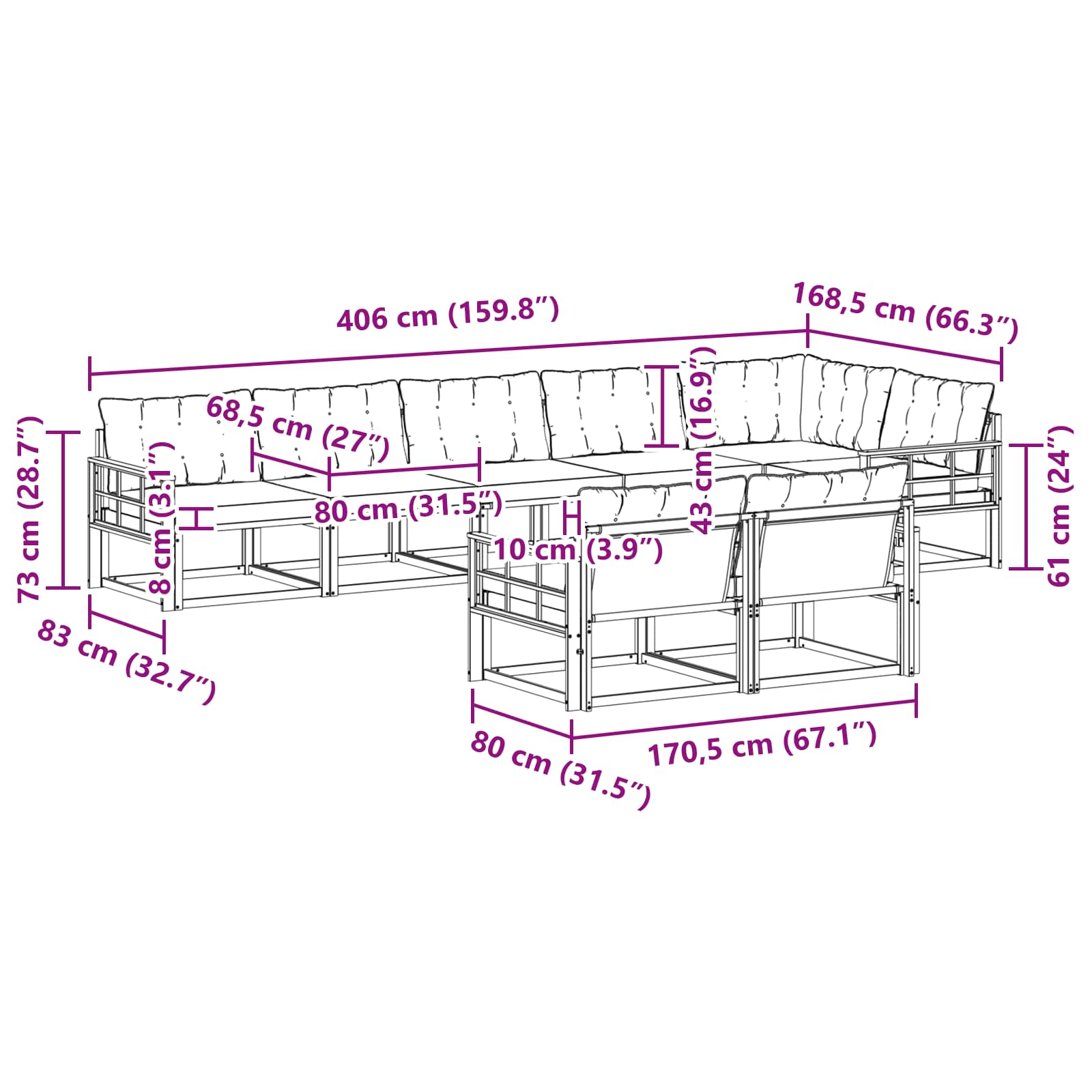 - 7 x Sitzkissen: 80 x 68,5 x 8 cm (LxBxH)