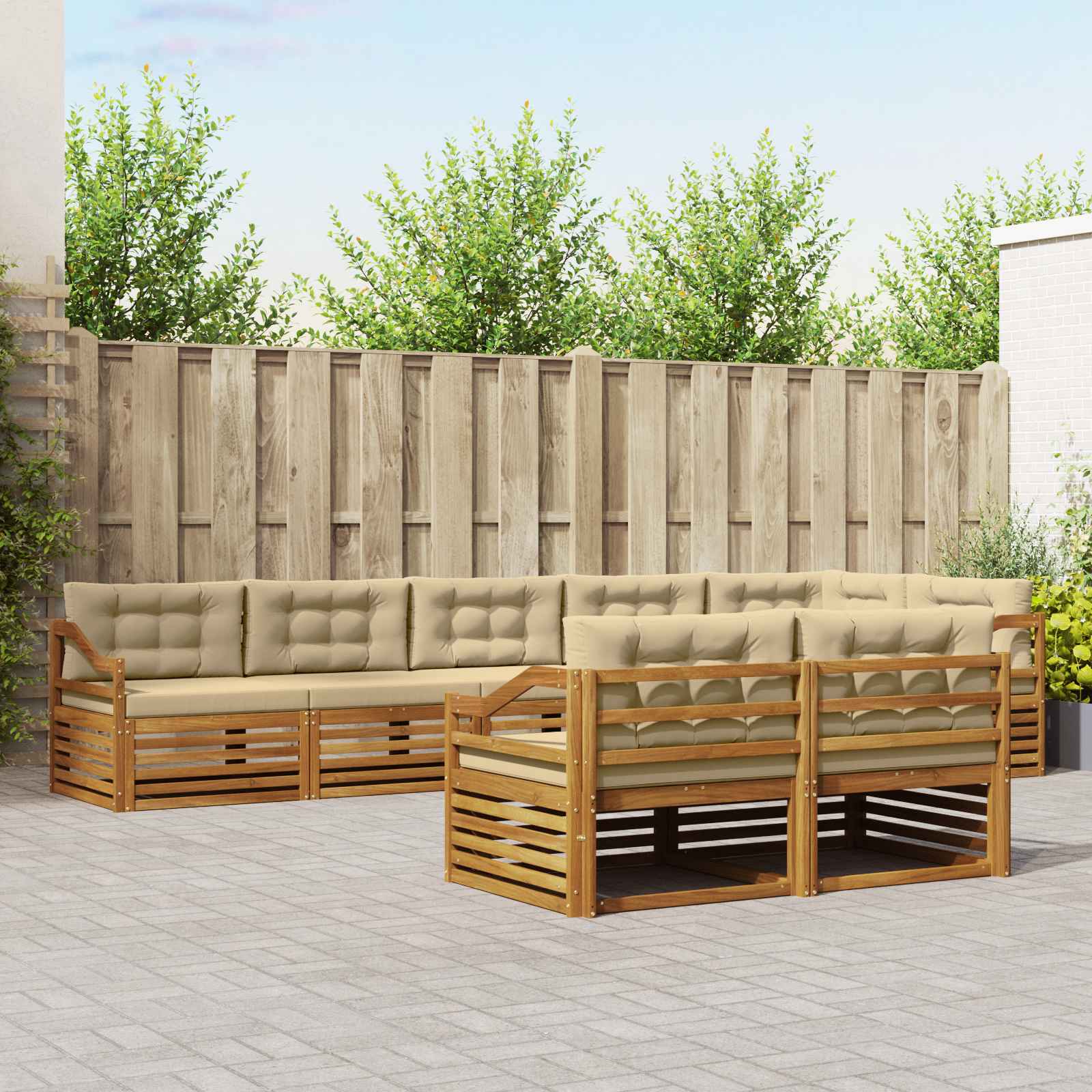 Dieses Outdoor-Sofa-Set vereint moderne Eleganz mit praktischem Komfort und passt super in jeden Garten oder auf jede Terrasse. Die schlichte und klare Ästhetik wird durch den minimalistischen Stil und den warmen Farbton des massiven Akazienholzes geprägt. Ideal zum Entspannen im Freien – es kombiniert Langlebigkeit mit der Flexibilität eines modularen Designs, das kreative Anordnungen erlaubt, ob für Entspannung, Unterhaltung oder lockere Gespräche. Jedes Element wertet das Gartenambiente auf und schafft eine einladende Atmosphäre für Zusammenkünfte oder für ruhige Momente ganz für sich. Massive Materialien: Das Sofaset besteht komplett aus solidem Akazienholz und bietet eine stabile, langlebige Grundlage für den Außenbereich. Die natürliche Maserung und warmen Brauntöne sorgen für einen schönen, harmonischen Look. Diese Materialwahl steht für Zuverlässigkeit und Haltbarkeit, denn Akazie hält der Witterung stand und sieht auch nach Jahren noch gut aus. Funktion und Design: Mit dem modularen Rahmen kannst du das Sofa nach deinen Räumen und Sitzbedürfnissen umstellen. Der Lattenrücken sorgt für eine bequeme Lehne und gute Luftzirkulation, was an heißen Tagen besonders wichtig ist. Ergonomische Armlehnen bieten zusätzlichen Komfort für längere Aufenthalte. Vielseitige Komponenten: Dank des stabilen Lattenrahmens ist dieses Stück auch bei häufigem Gebrauch beständig und lädt zum Entspannen ein. Die warmen braunen Arm- und Rückenlehnen ergänzen die robuste Struktur perfekt und bringen Stil und Komfort zusammen. Ideal für sonnige Gärten und lebendige Terrassen. Moderne Anpassungsfähigkeit: Stilvoll und minimalistisch, zeigt sich das Sofa-Set in einem modernen Design mit klaren Linien. Perfekt für zeitgenössische Außenbereiche, erfüllt es funktionale und stilvolle Ansprüche und schafft eine entspannende Atmosphäre, die man mit Freunden teilen oder allein genießen kann. Einfache Pflege: Um das schöne Aussehen zu bewahren, reicht es, es mit einem feuchten Tuch abzuwischen. Diese einfache Pflege sorgt dafür, dass das Sofa-Set immer attraktiv aussieht, auch wenn viel Betrieb herrscht oder sich die Jahreszeiten ändern.