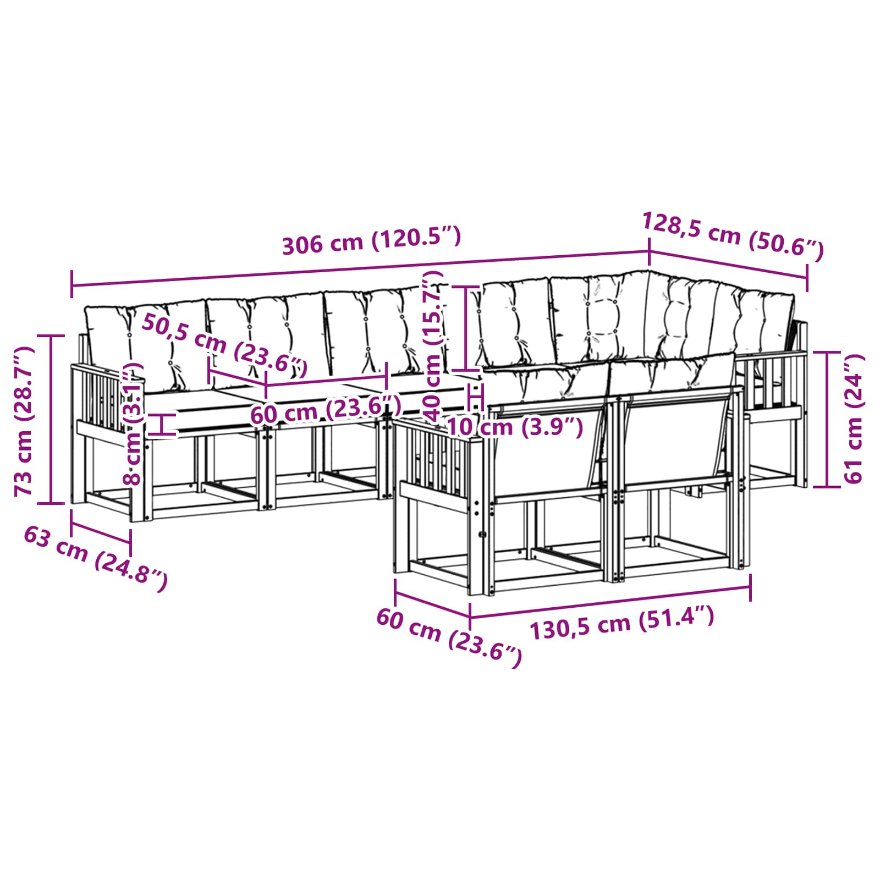 - 7 x Sitzkissen: 60 x 50,5 x 8 cm (LxBxH)