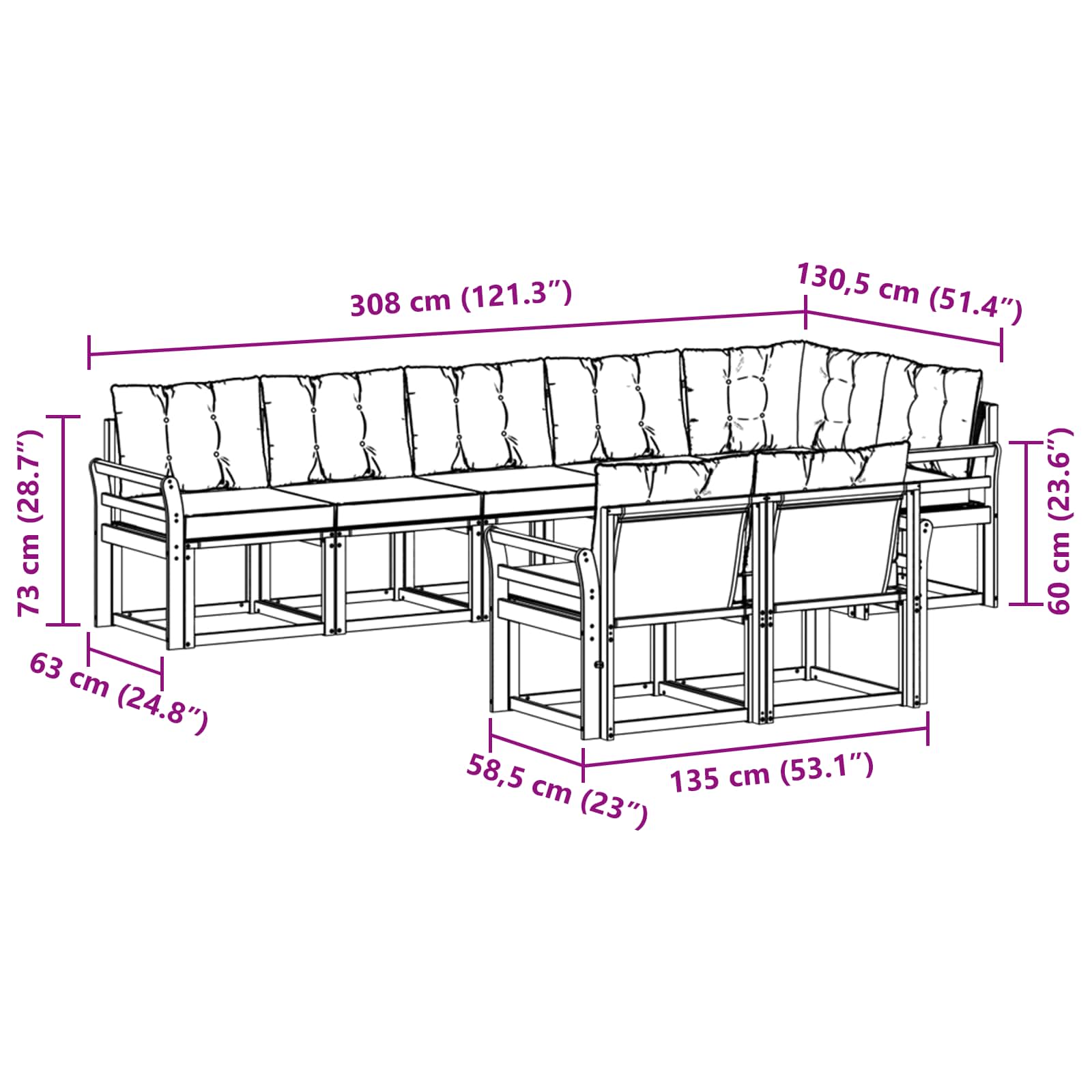 - 7 x Sitzkissen: 60 x 50,5 x 8 cm (LxBxH)