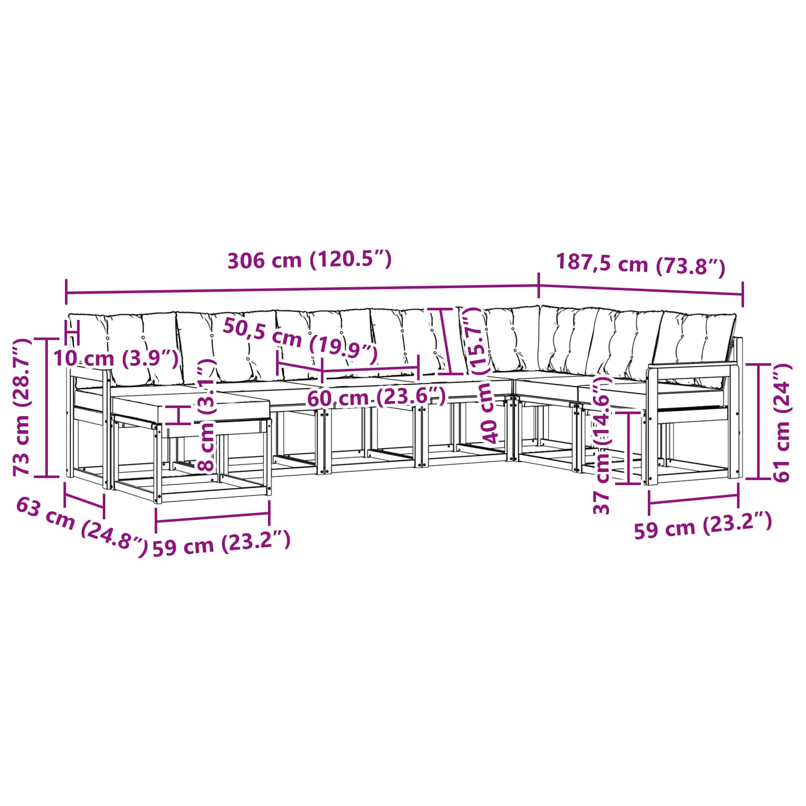 - Gesamtabmessungen: 306 x 187,5 x 73 cm (L x B x H)