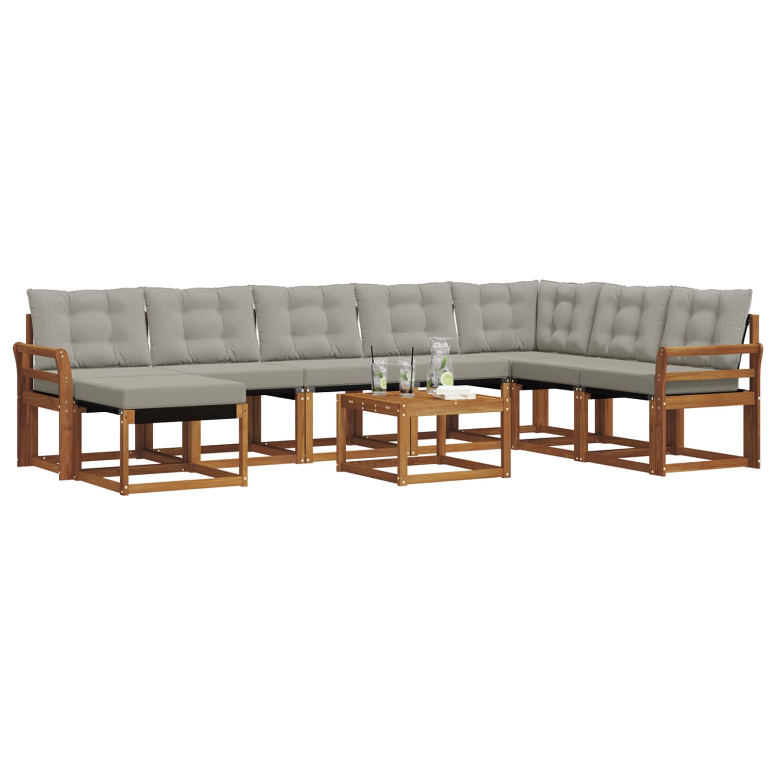 Dieses moderne Sofaset bringt sowohl Stil als auch Funktionalität in jeden Außenbereich. Mit klaren, schlichten Linien wirkt es sehr elegant und passt perfekt in zeitgenössische Gärten. Ideal für Terassen und entspannte Poolpartys, bietet es bequeme Sitzplätze und einen stabilen Rahmen, um gemütliche Nachmittage und fröhliche Abende zu genießen. Massivholz-Akazienrahmen Das Set besteht aus langlebigem Akazienholz, das für seine Stärke bekannt ist und super aussieht. Dieses Holz gibt jedem Außenbereich einen warmen, einladenden Look und ist gleichzeitig robust und wetterfest. Textilene-Komfort Mit einer Textilene-Sitzfläche sorgt das Sofaset für extra Komfort. Textilene ist UV-beständig, behält seine Farbe und Textur auch bei Sonnenschein. Perfekt für Gartenmöbel, weil es sowohl praktisch als auch schick ist. Wetterfeste Kissen Die dick gepolsterten Kissen aus wetterfestem Stoff bieten optimalen Komfort. Die Kissen sind feuchtigkeitsabweisend und haben Reißverschlüsse für einfache Reinigung, was die Pflege echt unkompliziert macht. Praktische Armlehnen Die stabilen Armlehnen aus Akazienholz unterstützen eine entspannte Haltung. Sie sehen nicht nur gut aus, sondern bieten auch guten Halt, was das Sitzen angenehm macht. Leicht zu reinigende Oberflächen Das Sofaset benötigt wenig Pflege; einfach mit einem feuchten Tuch abwischen. So bleibt es so ansprechend wie am ersten Tag, damit du mehr Zeit mit entspannen verbringen kannst.