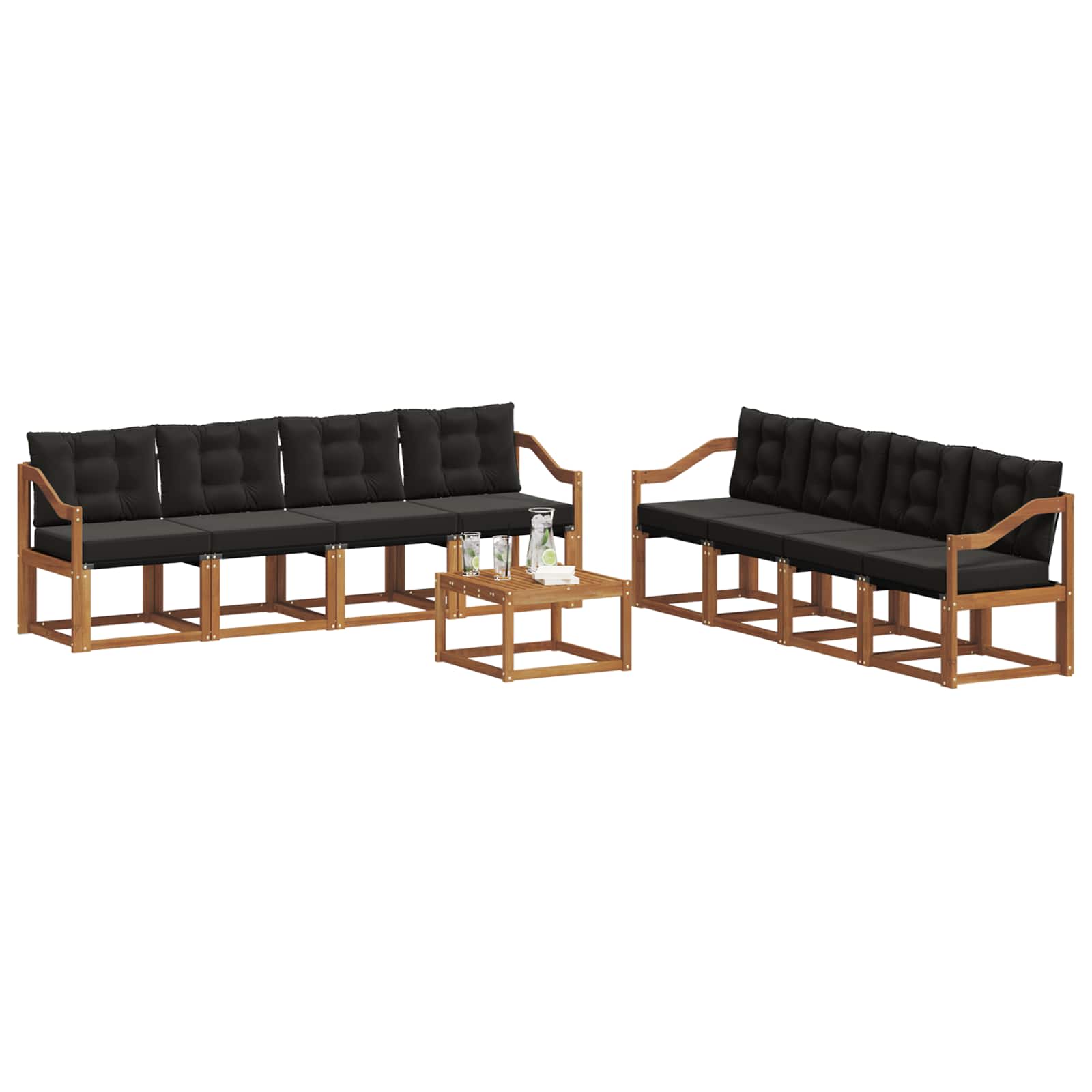 Das Outdoormöbel-Set vereint Style und Funktionalität und wird zum perfekten Mittelpunkt in jedem Garten oder auf jeder Terrasse. Das moderne Design, mit klaren Linien und minimalistischen Details, bringt Freude und lädt zum Entspannen ein, während du mit Freunden drinnen oder draußen zusammenkommst. Aus solidem Akazienholz gefertigt, ist das Set langlebig und sieht toll aus – genau das Richtige für alle, die auf der Suche nach praktischem und schickem Outdoormobiliar sind. Haltbares massiv akazienholz: Hergestellt aus massivem Akazienholz, ist dieses Outdoormöbel-Set bekannt dafür, langlebig und robust zu sein. Es bietet dir zuverlässige Unterstützung und bleibt stabil, während der warme Farbton deine Garten- oder Terrassengestaltung wunderbar ergänzt. Wetterbeständiges design: Das Set hat eine lackierte Oberfläche, die es vor der Sonne, leichtem Regen und anderen Wetterbedingungen schützt. Die polierte Oberfläche sorgt dafür, dass es toll aussieht und lange hält – perfekt für deinen Garten, die Terrasse oder den Hinterhof. Komponenten & design: Jedes Teil, von den Armlehnen bis zu den Rückenlehnen, ist sowohl stylish als auch funktionell gestaltet. Ergonomische Merkmale bieten zusätzlichen Komfort, während das durchgängige Design ein harmonisches Gesamtbild für verschiedene Anlässe im Freien schafft. Komfort & vielseitigkeit: Mit einem modularen Design kannst du flexible Konfigurationen erstellen, die zu jedem Raum und Bedürfnis passen. Egal, ob du entspannt allein sitzt, zum Feiern eingeladen bist oder einen ruhigen Moment zum Lesen suchst, dieses Set passt sich mühelos an und optimiert den Komfort. Einfache Pflege & wartung: Halte die Möbel in Schuss, indem du die Oberfläche mit einem feuchten Tuch reinigst und aggressive Reiniger meidest. Regelmäßige Pflege sorgt dafür, dass sie toll aussehen und lange halten.