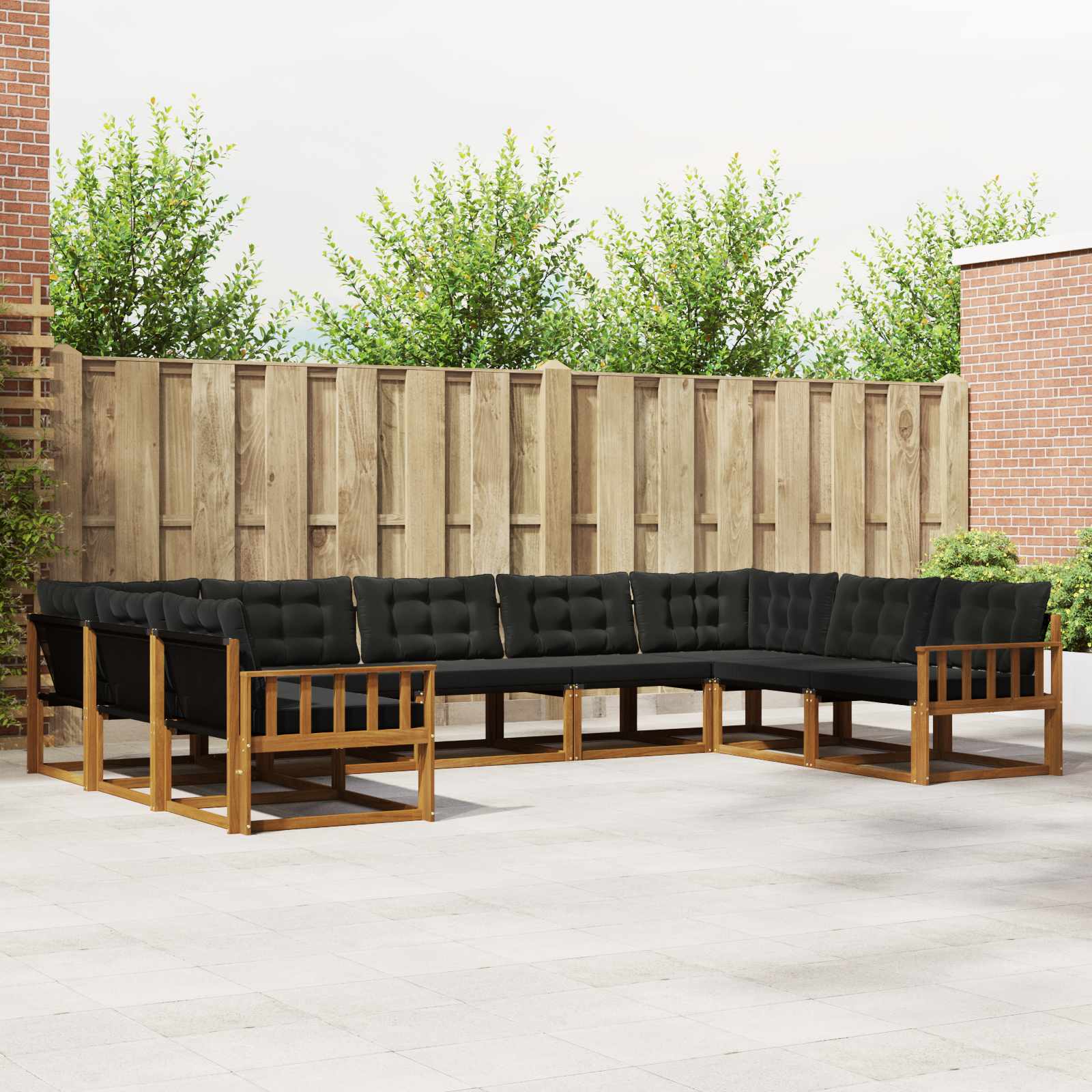 Das Outdoor-Möbel-Set verbindet Stil und Funktionalität und ist ein toller Mittelpunkt für jeden Garten oder jede Terrasse. Mit einem modernen Design und klaren Linien sorgt es für Eleganz und macht das Entspannen im Freien und gesellige Treffen einfach. Gefertigt aus solidem Akazienholz steht das Set für Langlebigkeit und sieht dabei immer gut aus – perfekt für alle, die praktische und schicke Gartenmöbel mögen. Robustes Akazienholz: Dieses Outdoor-Möbel-Set ist aus solidem Akazienholz gefertigt und bekannt für seine Langlebigkeit und Wetterbeständigkeit. Die stabile Konstruktion bietet zuverlässige Unterstützung und langhaltige Stabilität, während der warme Holzton jede Garten- oder Terrassenatmosphäre ergänzt. Wetterfeste Bauweise: Die lackierte Oberfläche schützt gegen Sonne, Regen und andere Witterungseinflüsse. So bleibt das Set lange schön und funktional, egal ob im Garten, auf der Terrasse oder im Innenhof. Design & Komponenten: Jedes Stück, ob Armlehne oder Rückenlehne, ist für Stil und Funktion ausgelegt. Praktische Features bieten extra Komfort, während das harmonische Design ein ansprechendes Gesamtbild für verschiedene Outdoor-Anlässe erzeugt. Komfort & Vielseitigkeit: Das modulare Design erlaubt verschiedene Anordnungen, die auf deine Bedürfnisse zugeschnitten werden können. Egal, ob Entspannen, gesellige Treffen oder ruhige Lesezeiten – dieses Set passt sich flexibel an jede Umgebung an und bietet maximalen Komfort. Einfache Pflege: Wisch einfach mit einem feuchten Tuch drüber und verwende keine aggressiven Reinigungsmittel. Regelmäßige Pflege sorgt dafür, dass das Set gut aussieht und lange hält.