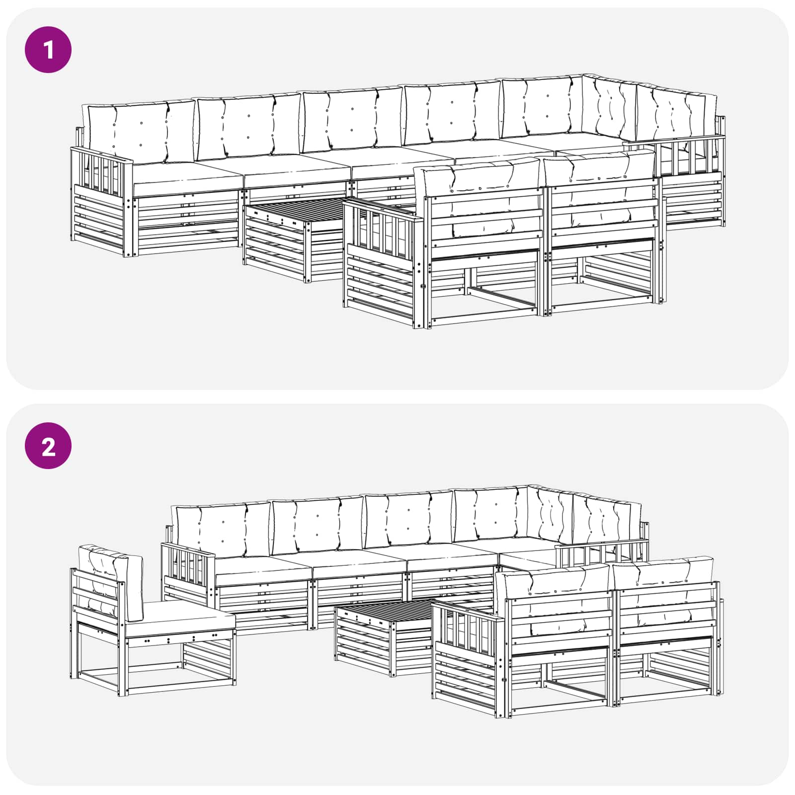 - 8 x Sitzkissen: 80 x 80 x 8 cm (LxBxH)