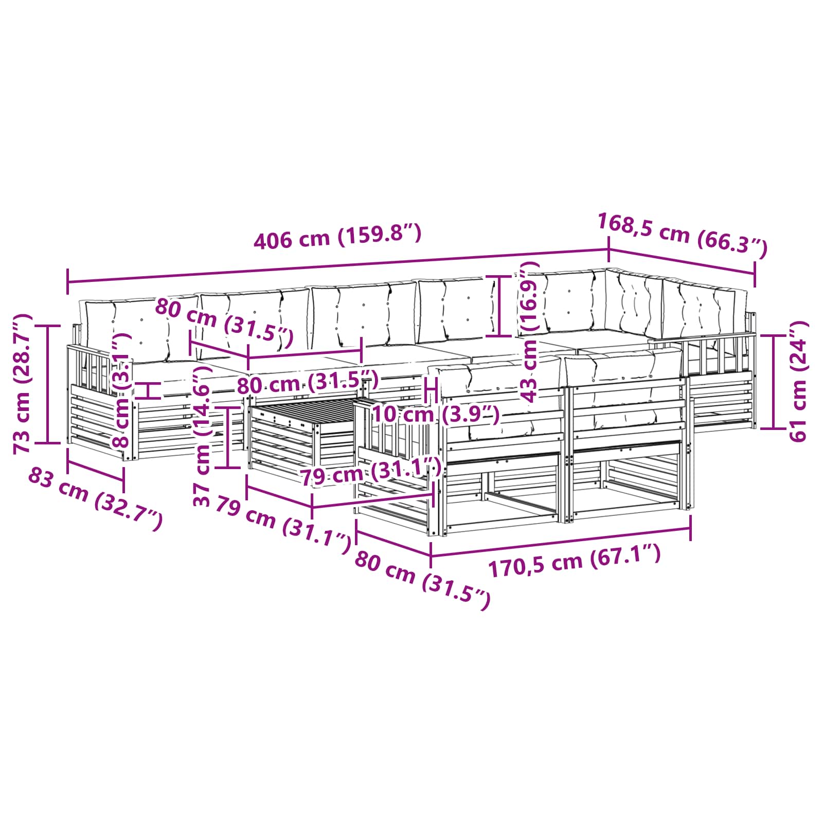 - 9 x Rückenpolster: 80 x 43 x 10 cm (LxBxH)