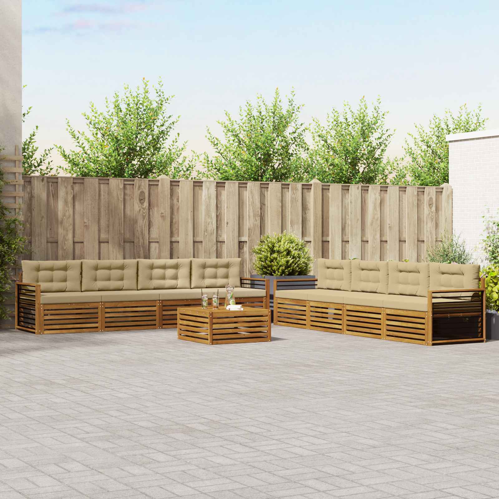 Gestalte deinen Garten oder deine Terrasse mit diesem super coolen Outdoor-Sofa-Set zu einem modernen Rückzugsort, wo Stil auf Funktion trifft. Schlicht und minimalistisch, strahlt das Set Eleganz und Raffinesse aus und ist perfekt für alle, die klare Linien und zeitgemäßes Design lieben. Die vielseitige Farbe und die schlichte Form passen in jede Außensituation und schaffen eine einladende Atmosphäre für Gäste oder entspannende Momente mit einem Buch in der Hand. Massivholz Akazie: Dieses Sofa-Set ist aus solidem Akazienholz gefertigt, was es extrem langlebig macht und bestens für alle Wetterlagen geeignet ist. Akazienholz bringt nicht nur eine tolle Optik mit, sondern hält auch den Elementen stand – perfekt für alle Outdoor-Aktivitäten. Vollständig einheitliche Farbe: Das Sofa-Set in einem wunderschönen Braunton fügt sich klasse in verschiedene Gartenlandschaften ein. Diese Farbkonstanz sorgt dafür, dass dein Outdoor-Bereich harmonisch und einladend wirkt. Fester Lattenrahmen: Der stabile Lattenrahmen sorgt für Zuverlässigkeit und Stabilität und macht das Set zur idealen Wahl für den Außenbereich. Die stabile Struktur bietet Unterstützung und bleibt dabei im Budget – perfekt für alle, die Funktionalität und Stil schätzen. Modulares Sitzen: Freu dich auf maximale Flexibilität mit dem modularen Design. Passe die Anordnung ganz nach deinem Anlass an, egal ob du eine kleine Runde oder eine große Feier planst. Diese Anpassungsfähigkeit ist perfekt für eine ständig wechselnde Outdoor-Gestaltung. Einfache Pflege: Die Pflege deines Sofa-Sets ist kinderleicht. Ein feuchtes Tuch reicht aus, um das Set frisch und ansprechend zu halten – so sparst du Zeit und sorgst dafür, dass es lange schön bleibt.