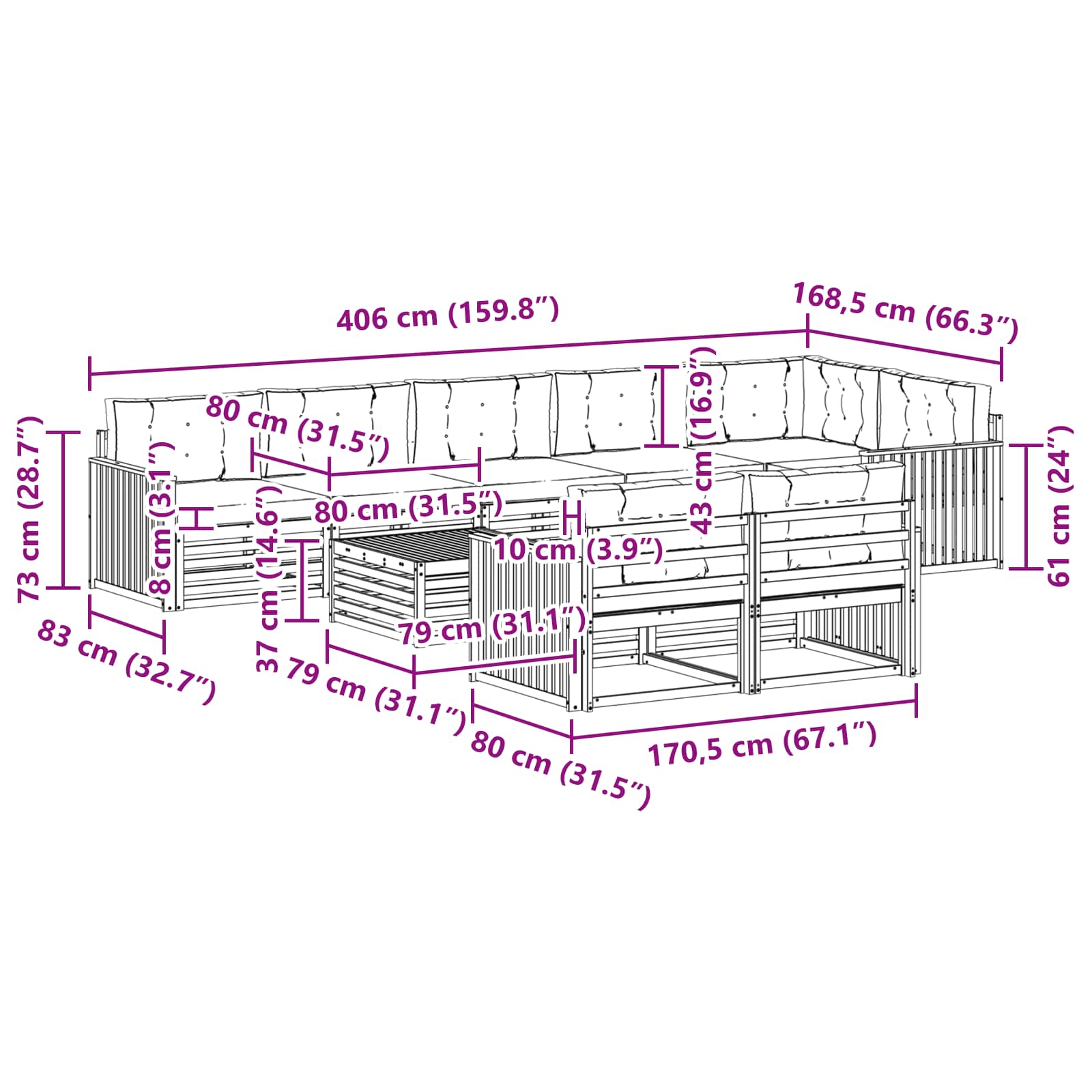 - 9 x Rückenpolster: 80 x 43 x 10 cm (LxBxH)